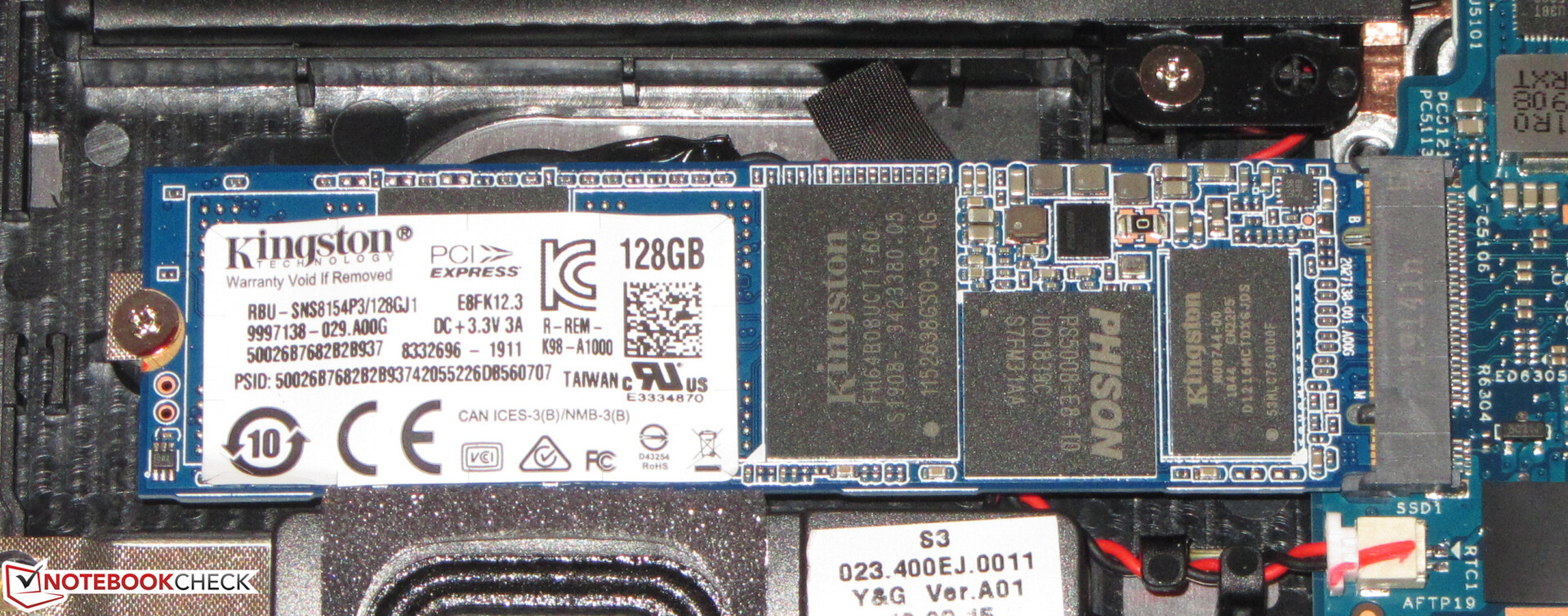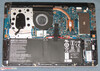 Die Arbeitsspeicherbestückung fällt mit 4 GB (fest verlötet) recht mager aus. Das Notebook hat allerdings noch eine Arbeitsspeicherbank (unbelegt) an Bord. Somit ist eine Erweiterung des Arbeitsspeichers möglich. Dies sei ausdrücklich empfohlen, da dann auch der Dual-Channel-Modus aktiviert würde. Letzterer führt zu einem Anstieg der Gesamtleistung. Eine NVMe-SSD sorgt für ein flink laufendes System. Ein Tausch der SSD wäre möglich.