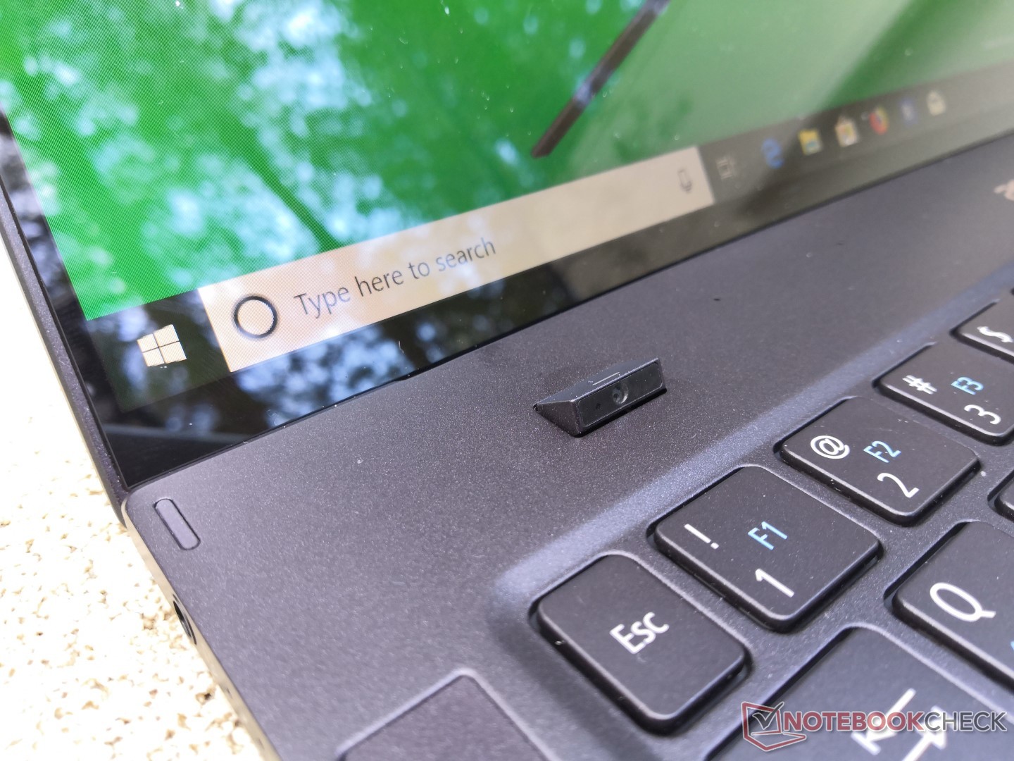 Die Webcam ist hinter der Tastatur ins Gehäuse eingelassen und kann bei Bedarf hochgeklappt werden. Das gibt zwar einen sehr steilen und damit nicht sehr vorteilhaften Winkel, dafür sollte es im eingeklappten Zustand keinerlei Privatsphäre-Bedenken geben.