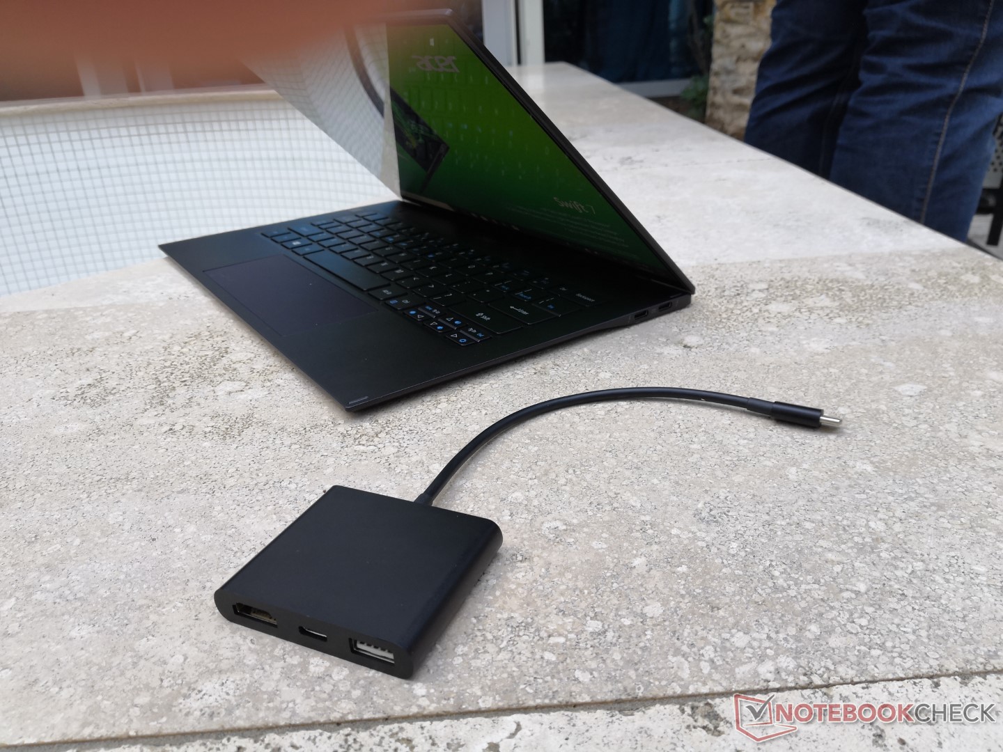Acer gibt eine Akkulaufzeit von bis zu 10 Stunden an. In Sachen Anschlüssen gibt es hier nur zwei Thunderbolt 3 (USB-C) Ports, über die das Notebook auch geladen wird.