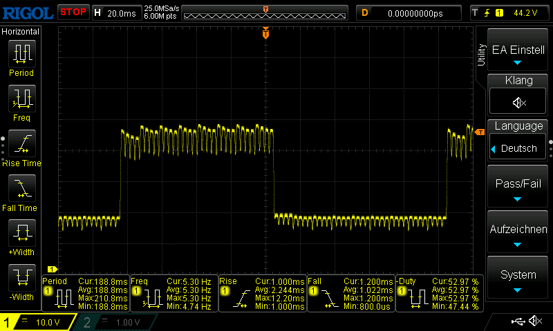 | 2.2 ms ... steigend ↗ und fallend ↘ kombiniert | ↗ 1 ms steigend | |