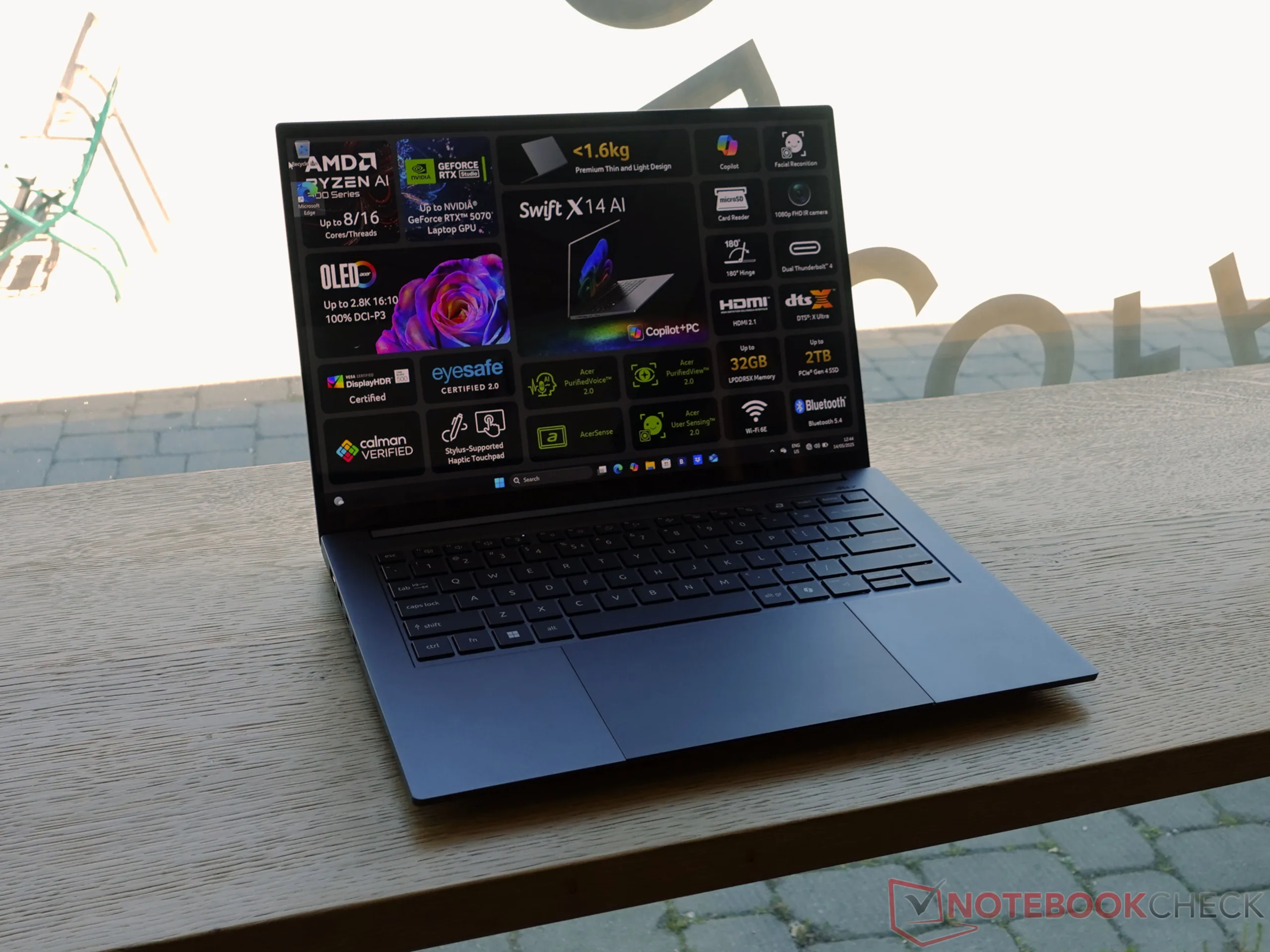 Ein weiteres Kernstück für kreatives Arbeiten ist das Display: Beide Swift X 14 Modelle sind mit einem 14,5 Zoll (36,8 cm) großen 2,8K OLED-Display ausgestattet. Dieses bietet nicht nur eine hohe Auflösung von 2.880 x 1.800 Pixeln und lebendige Farben, sondern ist auch Calman-verifiziert, was eine hohe Farbgenauigkeit verspricht. Das 16:10 Edge-to-Edge-Touchdisplay wird durch Corning® Gorilla™ Glass vor Kratzern geschützt.