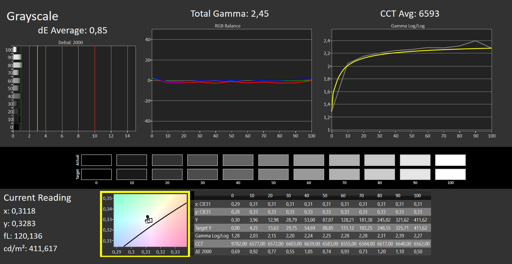 ΔE Greyscale Calman: 2.68 | ∀{0.09-98 Ø5}