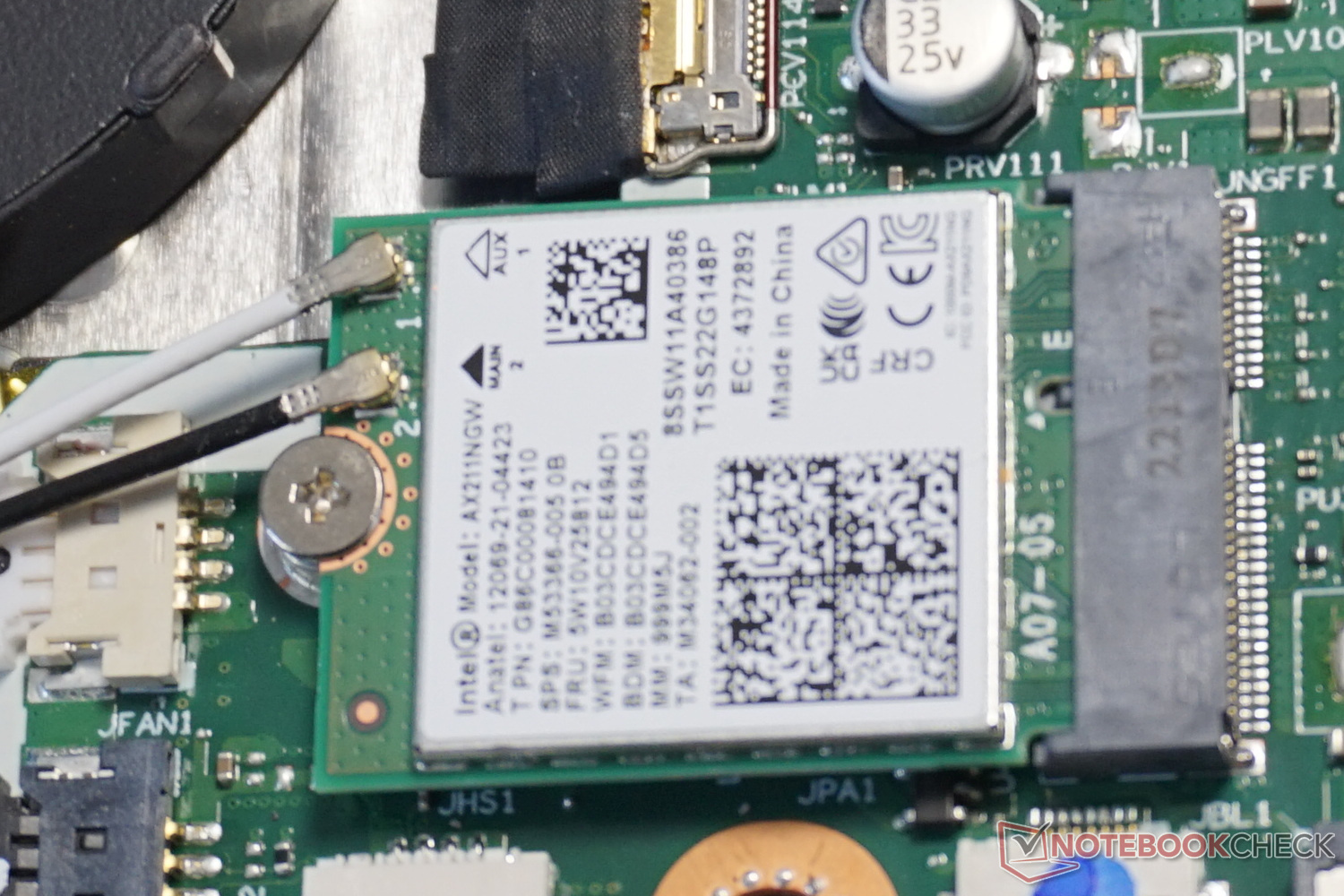 Das austauschbare WLAN-Modul Intel AX211 verhält sich den Erwartungen entsprechend. Die Übertragungsrate bleibt beim Test auf stabil hohem Niveau und kann sich darüber hinaus leicht oberhalb des Durchschnitts einsortieren. Mit ausreichend gutem WLAN-Signal stört es somit kaum, dass kein LAN-Port vorhanden ist.