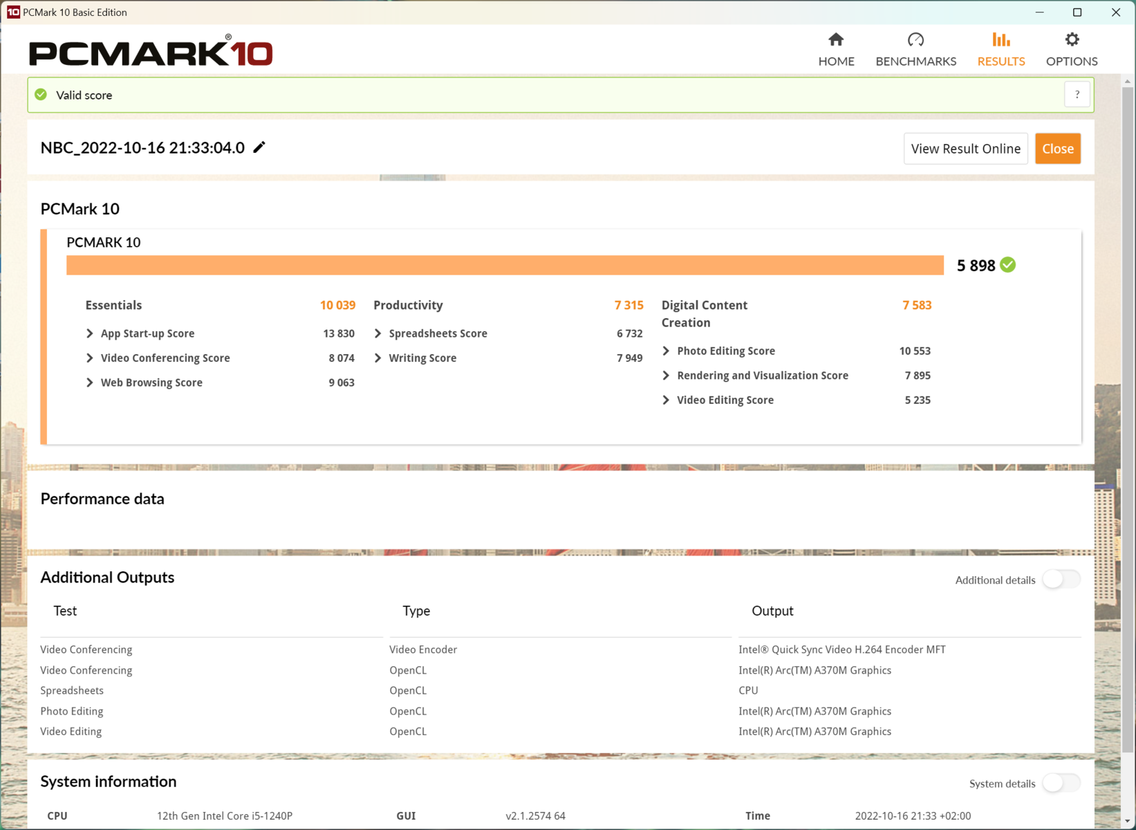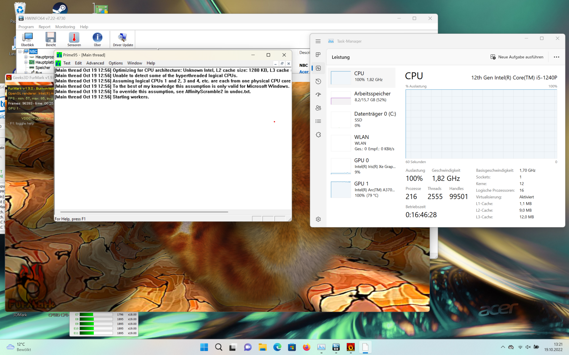 Der Prozessor Intel Core i5-1240P und die GPU Intel Arc A370M befinden sich auf dem aktuellen Stand der Technik. Beiden ist gemein, dass sie sich mehr durch Effizienz als durch besonders hohe Leistungswerte auszeichnen.