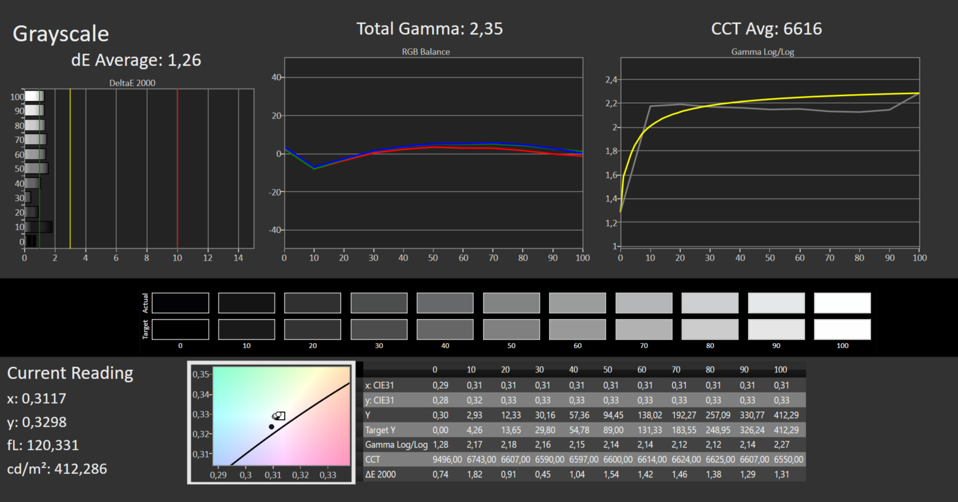ΔE Greyscale Calman: 1.26 | ∀{0.09-98 Ø5}