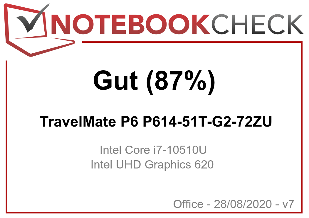 | Acer TravelMate P6 P614-51T-G2-72ZU i7-10510U, UHD Graphics 620, 60 Wh | Lenovo ThinkPad X1 Carbon 2020-20UAS04T00 i7-10510U, UHD Graphics 620, 51 Wh | Lenovo ThinkPad T14s-20T00044GE i5-10210U, UHD Graphics 620, 57 Wh | Lenovo ThinkPad T14s-20UJS00K00 R7 PRO 4750U, Vega 7, 57 Wh | Dell Latitude 7410 i7-10610U, UHD Graphics 620, 68 Wh | Asus ZenBook 13 UX325JA i7-1065G7, Iris Plus Graphics G7 (Ice Lake 64 EU), 67 Wh | Apple MacBook Pro 13 2020 2GHz i5 10th-Gen i5-1038NG7, Iris Plus Graphics G7 (Ice Lake 64 EU), 58 Wh | Durchschnitt der Klasse Office | |