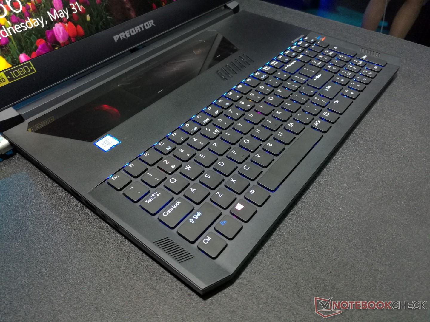 Wie beim ROG Zephyrus ist die mechanische Tastatur mit individueller RGB-Hintergrundbeleuchtung an die Front des Gerätes gerückt, was der Kühlung zu gute kommen soll. Dahinter gewährt Acer einen Gorilla Glas-geschützten Blick auf das AeroBlade-Kühlsystem mit seinen fünf Heatpipes und 3D-Lüftern. Ab August soll das Triton 700 in Konfigurationen ab 3.400 Euro zu haben sein. Unten findet ihr noch den Benchmark-Vergleich zu den Nvidia Geforce GPUs mit der neuen Max-Q-Variante.