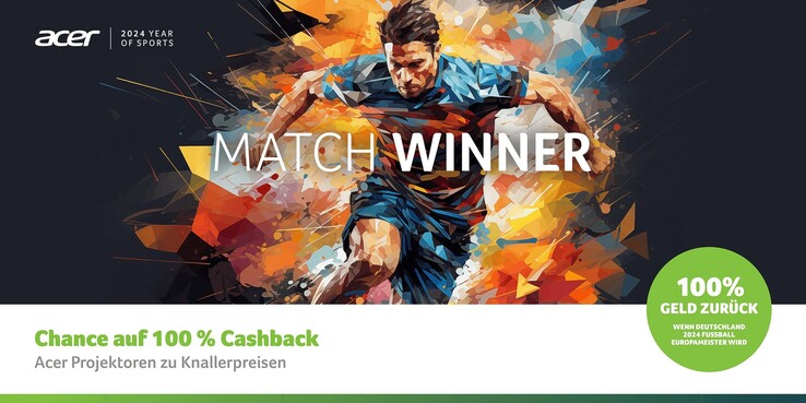 Anschließend erhalten Kunden bis zum 13. August 2024 den gesamten Kaufpreis zurückerstattet, allerdings nur dann, wenn Deutschland Fußball-Europameister wird, schon beim zweiten Platz entfällt das Cashback vollständig. Drei unterschiedliche Acer-Projektoren können für diese Cashback-Aktion registriert werden: