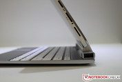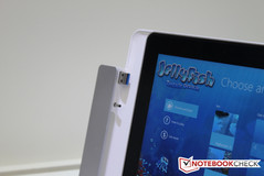 Für den Präsentationsmodus wird das Display des Acer Iconia W510, wie beispielsweise beim Lenovo Yoga, um mehr als 180 Grad nach hinten respektive unten umgeklappt. Das Tablet lässt sich dann auf der umgedrehten Tastatur schräg nach oben aufrichten und wie ein Präsentations-Display mit Touchscreen nutzen. Für das Iconia W510 Tablet nennt Acer eine Akkulaufzeit von 9 Stunden. 18 Stunden sollen es mit der optionalen Dock sein. Bei den Anschlüssen finden sich Micro-USB, HDMI sowie ein Micro-SIM-Slot. Das Tastatur-Dock bietet 1x USB 2.0.