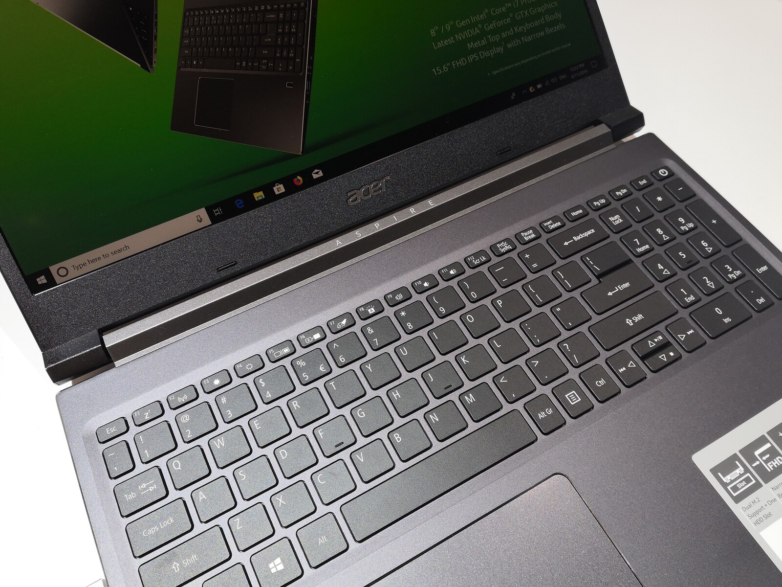 Beim Bildschirm gibt's keinerlei Abstriche – das 15,6 Zoll große Display setzt auch beim günstigeren Aspire 5 auf ein IPS-Panel mit Full HD Auflösung. Dafür ist der Fingerabdrucksensor nur gegen Aufpreis erhältlich. Die Tastatur ist beleuchtet und bringt im Gegensatz zum Aspire 7 ein Numpad mit.