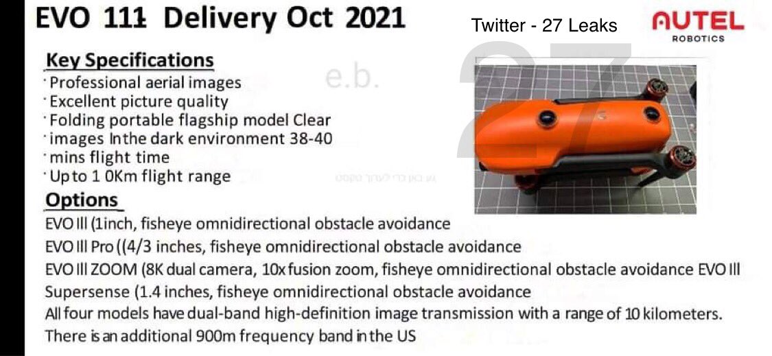 Dass es sich hierbei um einen echten Leak gehandelt hatte, glaubt kaum einer, was natürlich bedeutet, dass möglicherweise auch die aktuellen Leaks einiger Specs von insgesamt acht neuen Autel-Drohnen inszeniert sein könnte. Das vom Twitter-User Jasper Ellens zur Verfügung gestellte Material (siehe unten) beschreibt zwar keine EVO Nano - möglicherweise startet die spannende 249 Gramm Mini-Drohne also unter der Bezeichnung EVO Mini und EVO Mini+ - immerhin erfahren wir aber einiges mehr zu Autels geplanter Drohnen-Armada, die gegen die DJI Air 2S sowie bald erwartete Drohnen wie die DJI Mavic 3 sowie eine potentiell in Entwicklung befindliche DJI Mini 3 anfliegen wird.