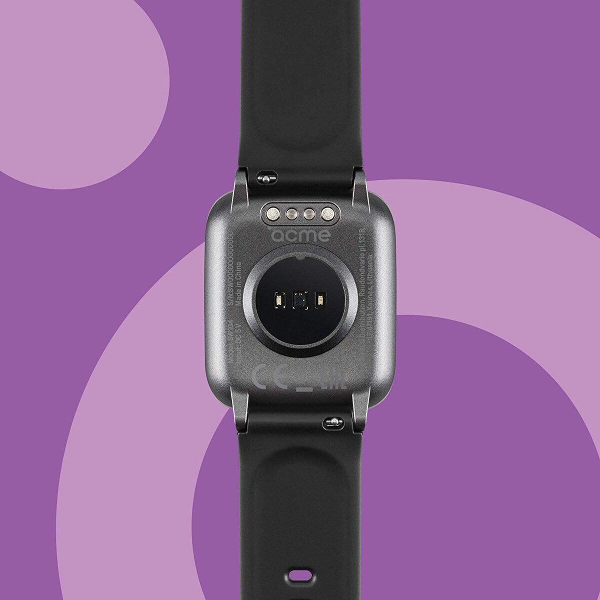 Die Acme SW104 bietet ein 1,3 Zoll großes IPS-Display und wird über einen Touch-Button gesteuert. Die smarte Armbanduhr zählt unter anderem Schritte, zurückgelegte Distanzen sowie verbrannte Kalorien und misst den Puls. Der Nutzer kann als Sportfunktionen Gehen, Laufen, Radfahren, Laufband oder Wandern wählen. Ein integrierter Atemassistent sowie ein Tracker der Schlafqualität runden das Featureset ab.