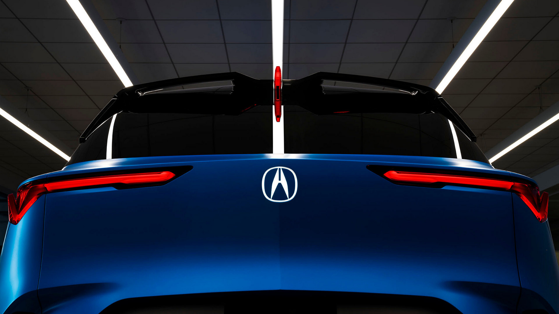 Die Front-Illuminierung des Precision EV mit schlitzförmigen LED-Augen, komplett beleuchteter Haifischnase und zwei seitlichen LED-Kiemen als Lufteinlässe lässt den E-SUV noch mehr wie einen Raubfisch wirken. Seitlich zeigt die Silhouette des Acura Precision EV Concept hingegen optisch die besagte und für Motorboote typische, nach hinten abfallende Seitenlinie mit hochgezogenem Heck. Insgesamt wirkt der der Acura Precision EV sehr breit, was durch die komplett abgedunkelte Fenster- und Dachpartie verstärkt wird. Türgriffe sind nicht zu erkennen, als Seitenspiegel dienen kleine Kameras.