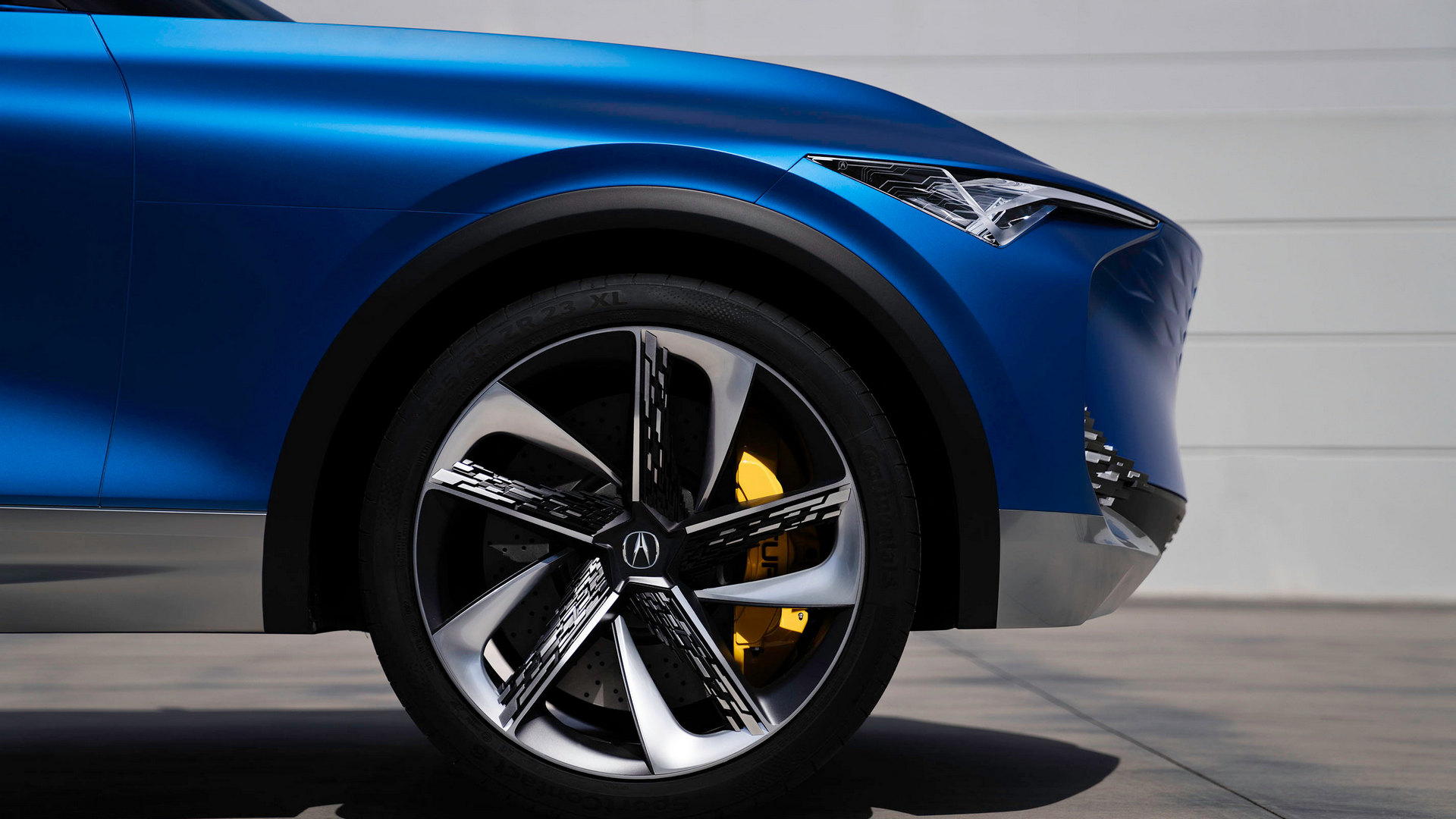 Die Front des Precision EV wird von einer breiten und aufragenden Frontschürze mit voll beleuchtetem "Kühlergrill" bestimmt. Da darf auch das illuminierte Acura-Markensymbol nicht fehlen. Überhaupt nutzt auch Acura viele Lichtspielereien als das neue Chrom für sein Concept Car. Acura spricht bei seinem Precision EV sogar von einer "theatralischen Beleuchtung" für den "Diamond Pentagon"-Kühlergrill und der neuen "Particle Glitch"-Beleuchtung an Front- und Heckpartie, die sich auch auf den Speichen der riesigen 23-Zoll-Räder des Konzept-E-SUVs finden.