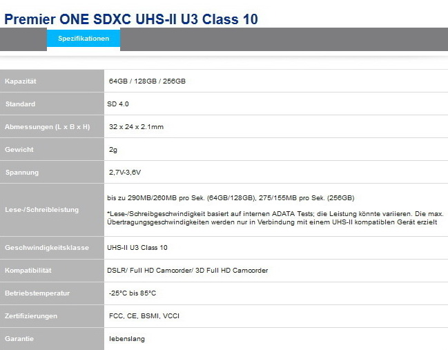 Adata präsentiert mit den beiden neuen Premier One UHS-II U3 Class 10 Speicherkarten zwei Hochleistungs-microSDXC- und SDXC-Karten. Die Premier One SDXC-Serie bietet Anwendern Speicherkarten, die auch für die Speicherung hochauflösender Videoinhalte in 4K/UHD und 8K geeignet sind. Ergänzend dazu wurden die Modelle auch für VR-Anwendungen entwickelt.