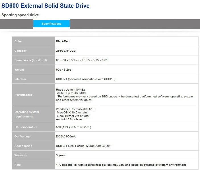 Die neuen externen portablen SSDs der Reihe SD600 wiegen jeweils nur 90 Gramm und messen 80 x 80 x 15,2 Millimeter. Sie arbeiten ohne separaten Treiber direkt mit Windows, Xbox One, PS4 und Android zusammen. Beide Modelle der SD600 verwenden stoßfeste Kunststoffmaterialien beim Gehäuse. Damit der SSD600 mit 3D-TLC-NAND auch nicht beim vollständigen Beschreiben und großen Dateien nicht so schnell die Puste ausgeht, hat Adata seiner SSD600-SSD einen DRAM- und SLC-Cache spendiert. Wie große dieser Pufferspeicher konkret ist, verrät Adata allerdings nicht.