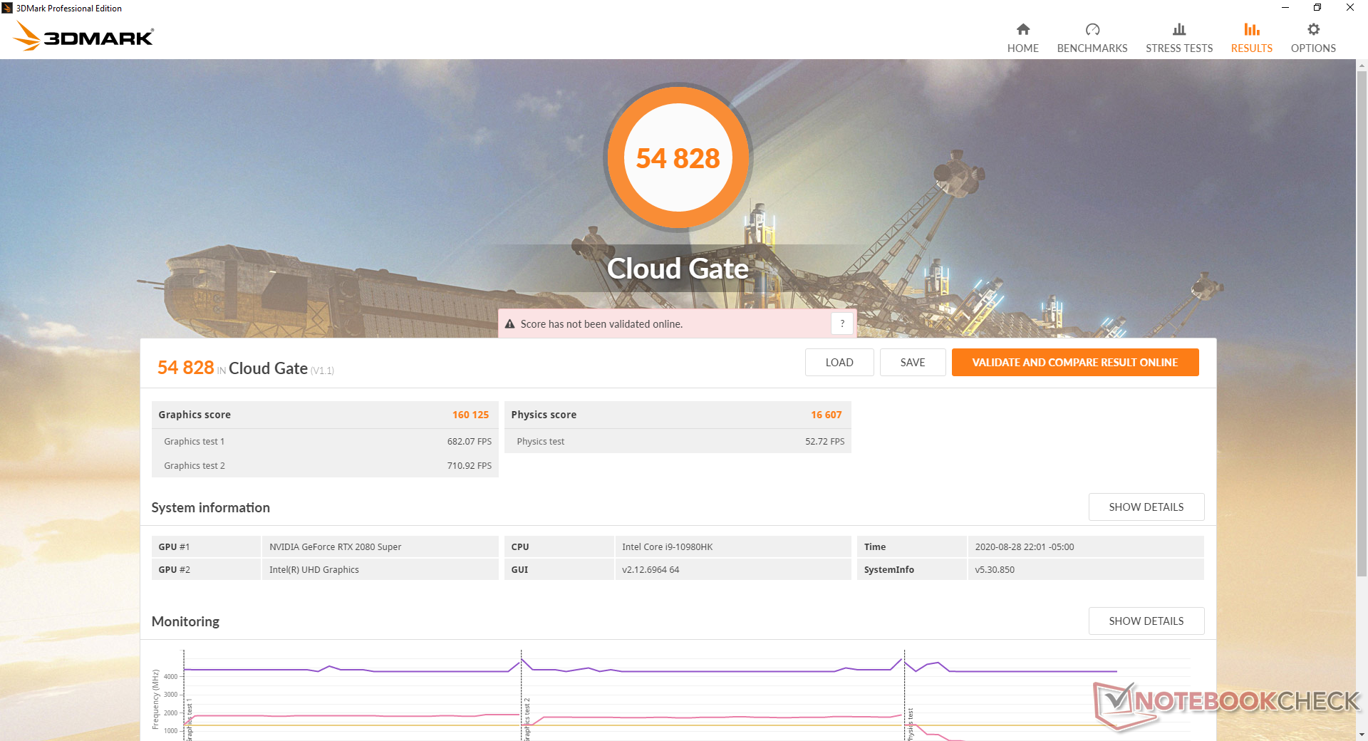 Anders als das MSI GS75 oder das Razer Blade Pro, welche sich beide auf Max-Q-GPUs verlassen, schafft es das Alienware m17 R3, eine voll ausgebaute mobile GeForce RTX 2080 Super einzusetzen und hat in Games daher die Nase vorn. Enthusiasten werden in 1080p 60+ FPS oder auch 4K60 die Extraleistung zu schätzen wissen, welche das Alienware den meisten anderen ultradünnen Gaming-Laptops voraus hat. Die hohen Turbo-Boost-Taktraten sind auch über die Zeit sehr stabil, was für ein solch dünnes Gehäuse mit ungedrosseltem Core i9 und einer GeForce Super GPU schon beeindruckt.