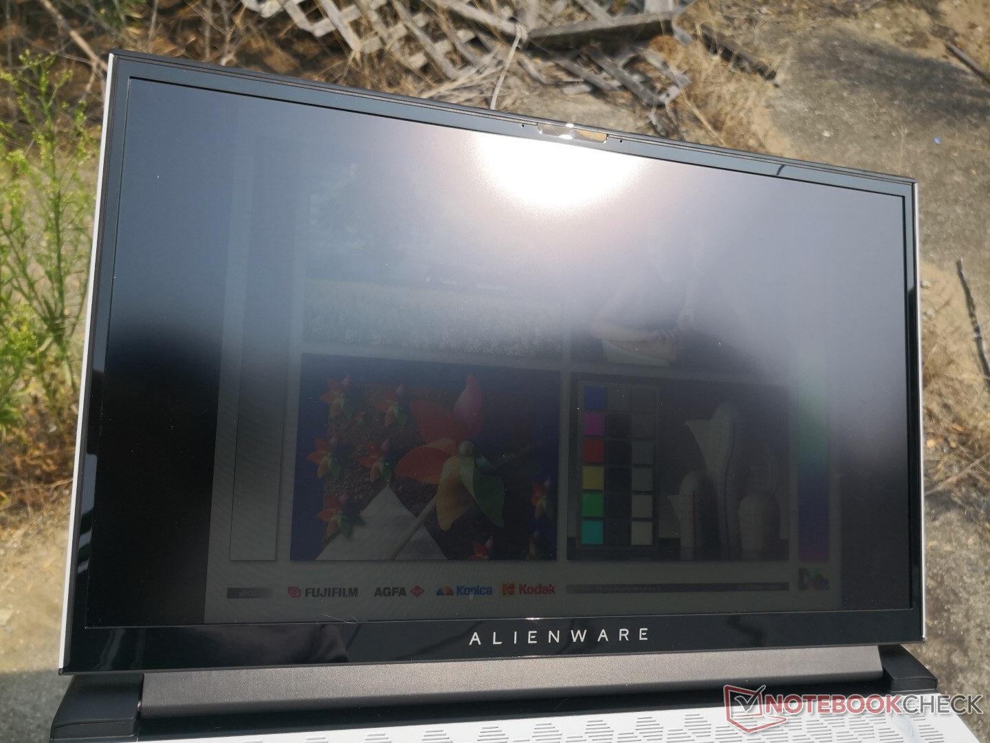 Die Display-Helligkeit hat sich seit dem m17 R2 kaum verändert, die Verwendung im Freien bleibt dementsprechend gleich. Um Spiegelungen zu vermeiden, sollte direktes Sonnenlicht vermieden werden.