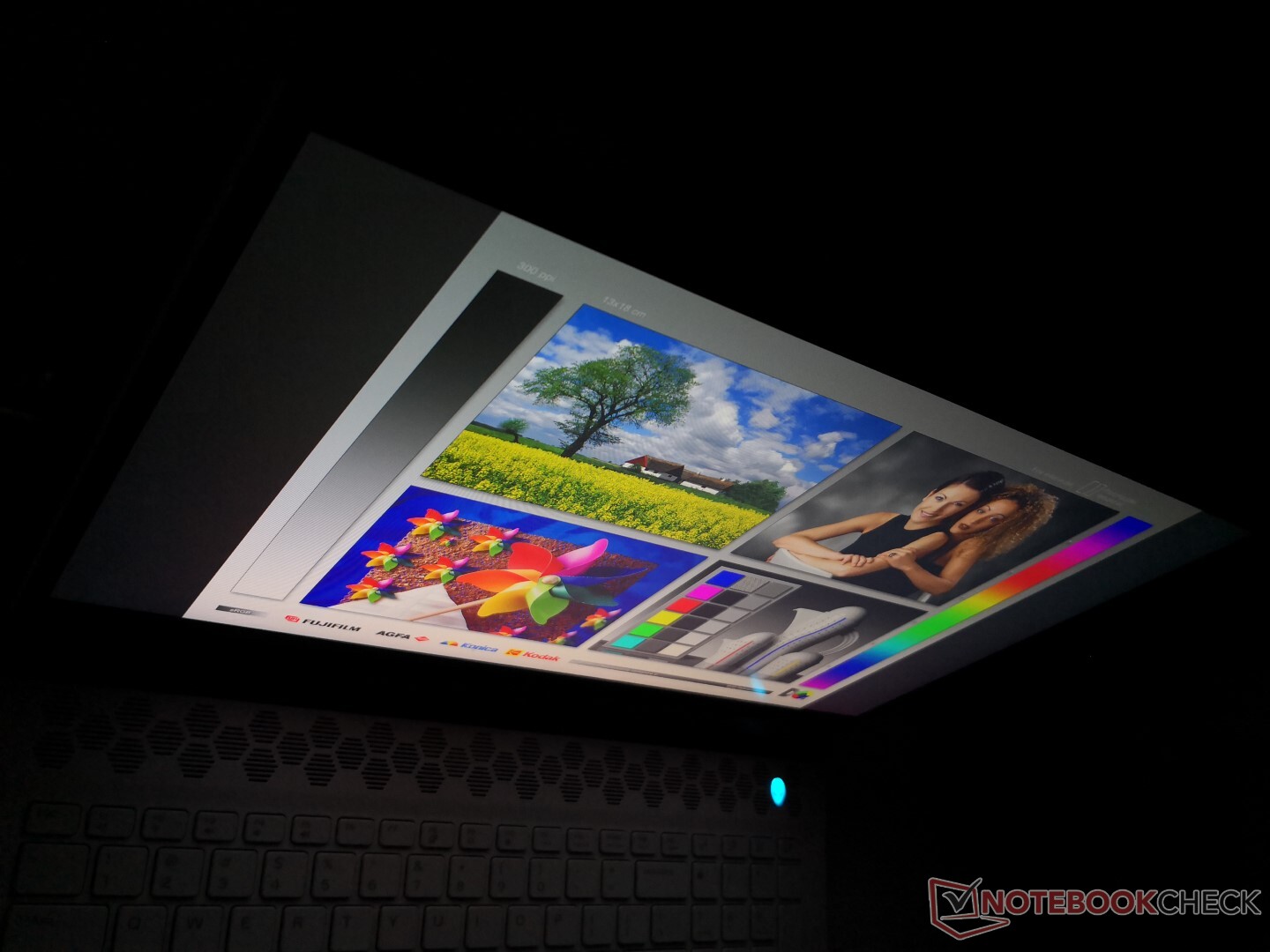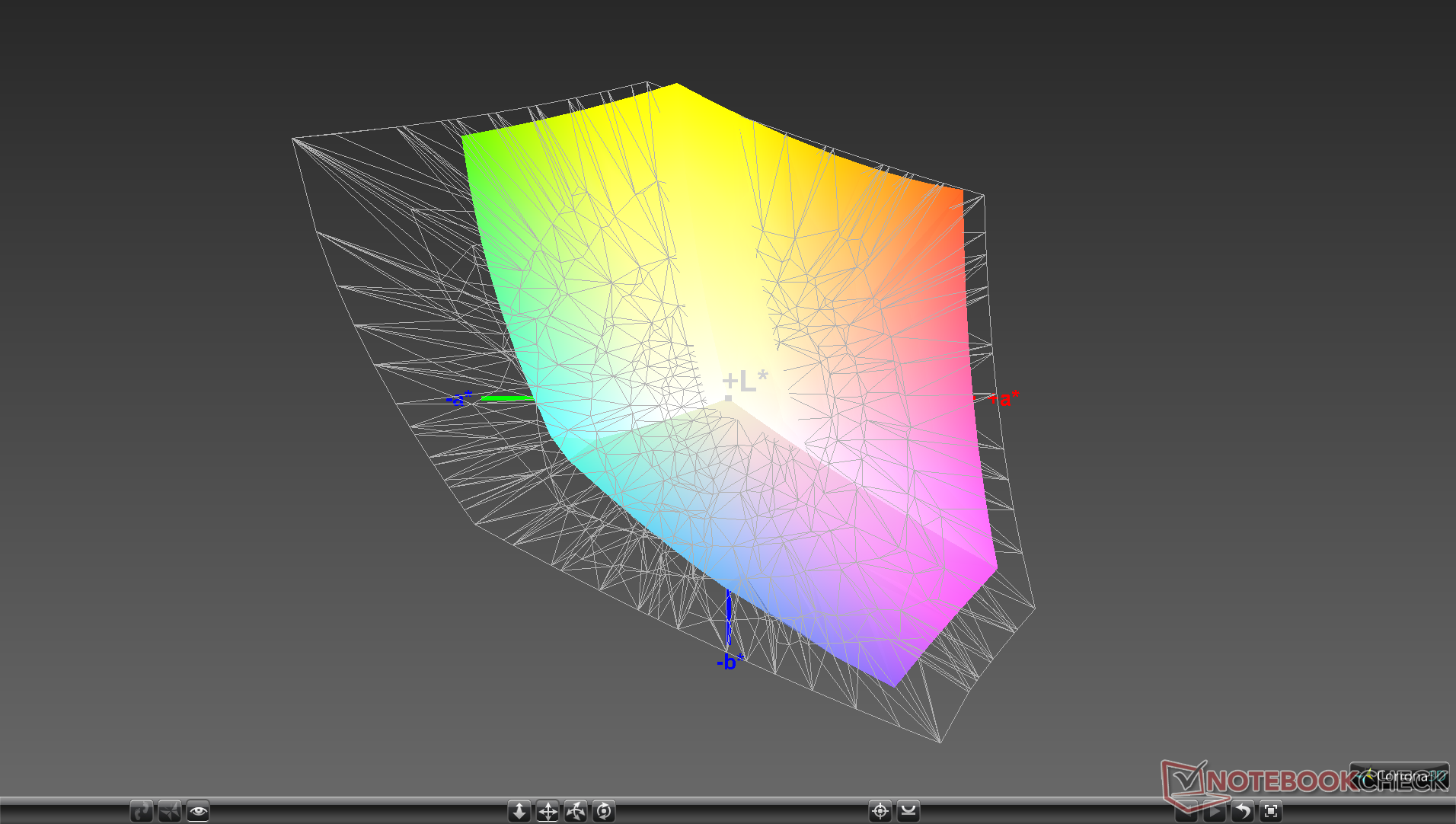 Der sRGB-Farbraum wird nahezu vollständig abgedeckt, AdobeRGB noch zu 65 Prozent. Die Werte sind bei anderen 1080p-Displays mit hoher Bildwiederholrate ähnlich. Das optionale 4K-Display verspricht volle AdobeRGB-Abdeckung, dafür sind allerdings die Reaktionszeiten und die Bildwiederholrate dann langsamer.