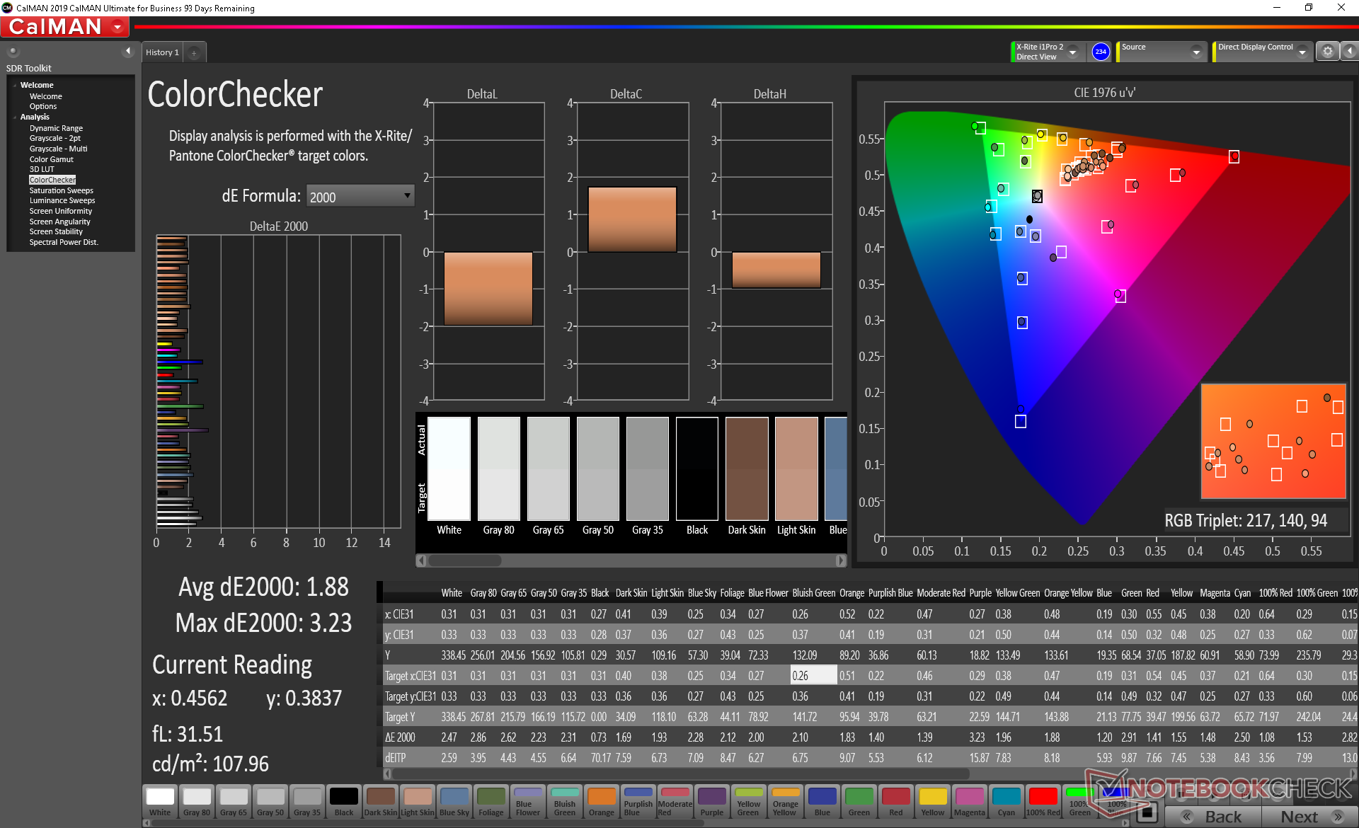 ΔE ColorChecker Calman: 1.88 | ∀{0.5-29.43 Ø4.78}