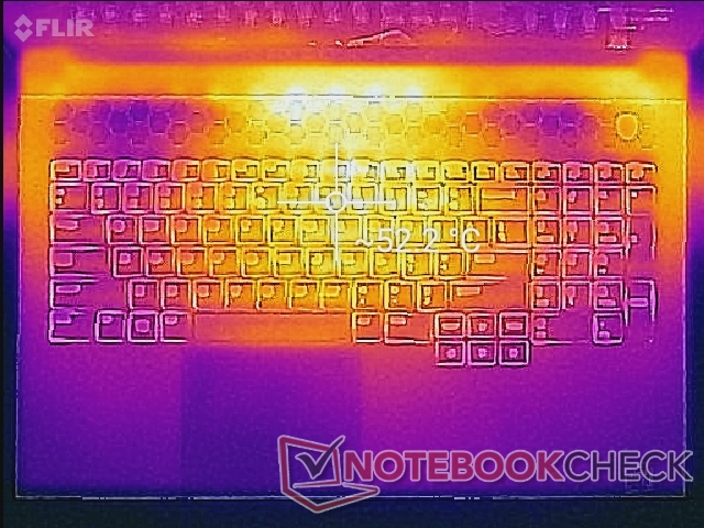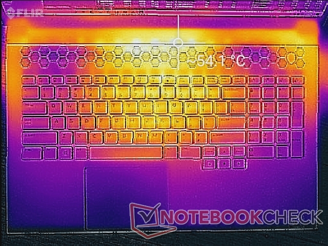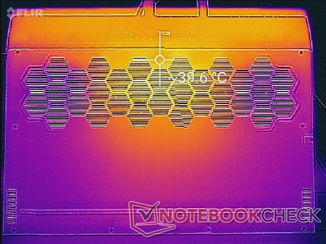 Der Laptop wird im Leerlauf oder bei kleineren Lasten wärmer als die meisten Konkurrenten, vermutlich vor allem weil die Lüfter dann sehr lethargisch agieren. Anders gesagt, versucht der Laptop abseits des Gamings so leise wie möglich zu sein, auch wenn dies höhere Oberflächentemperaturen zur Folge hat.