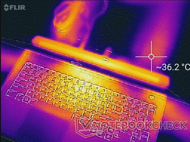 (+) Die Handballen und der Touchpad-Bereich sind mit gemessenen 31.2 °C kühler als die typische Hauttemperatur und fühlen sich dadurch kühl an.