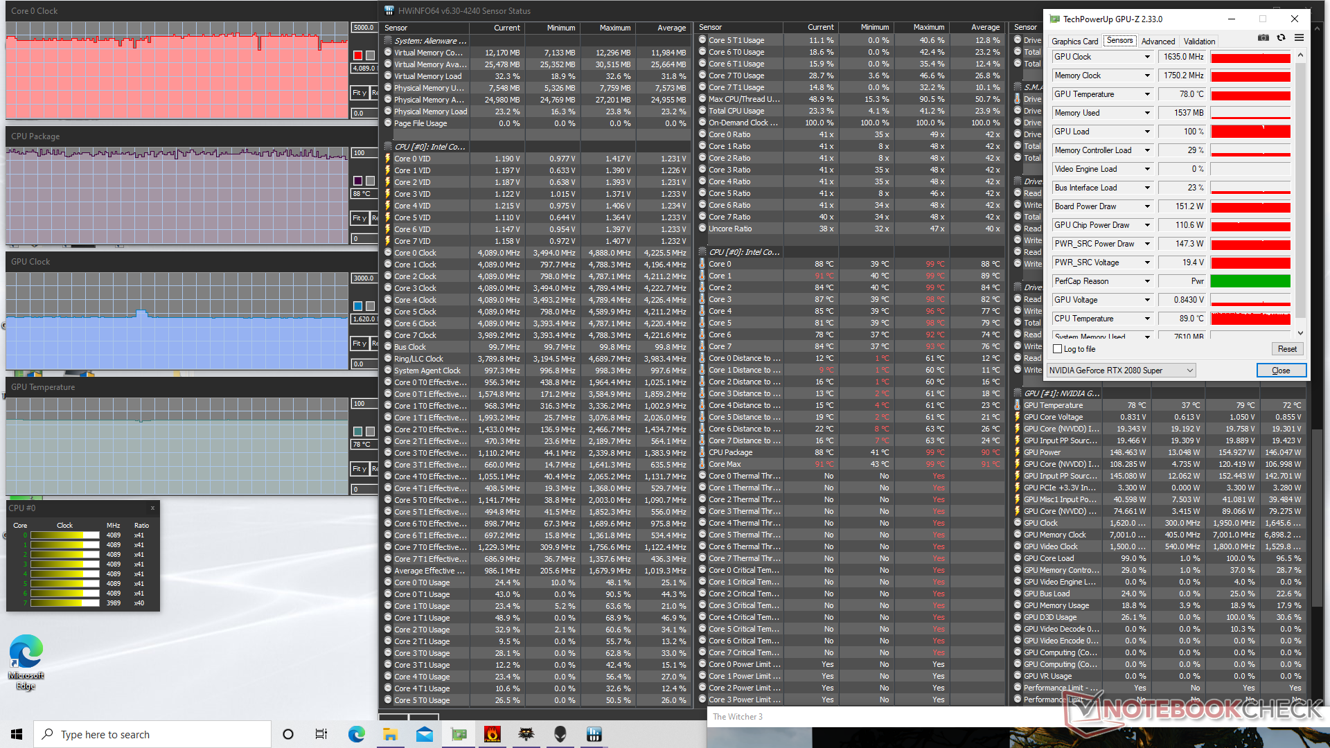 | Witcher 3 Stress (Performance mode) | 4.1 - 4.3 | 1635 | 89 | 78 |