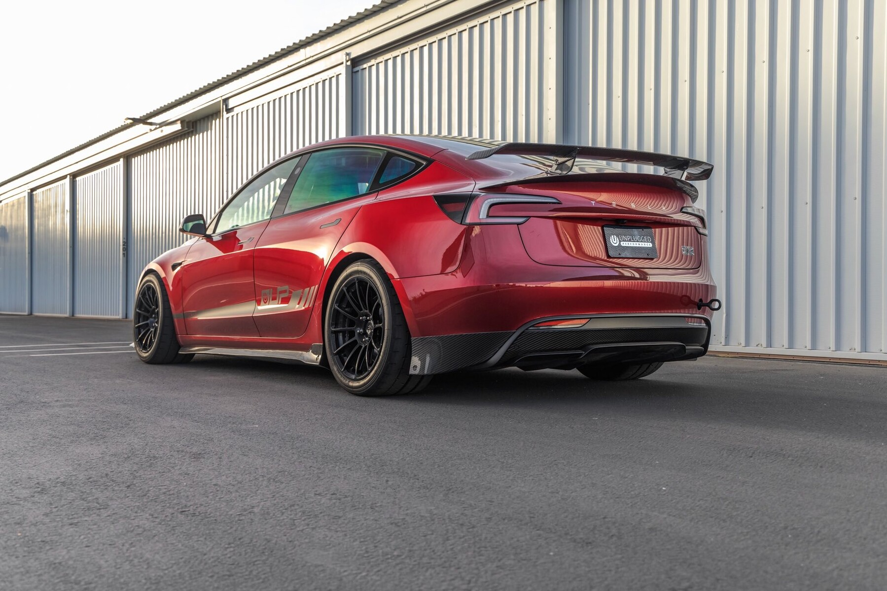 Denn Unplugged Performance hat für das 2024er Modell des Tesla Model 3 Performance ein neues Aero-Kit aus Kohlefaser entwickelt, das den sportlich-aggressiven Look auf die nächste Stufe hebt, ohne übertrieben oder nutzlos zu erscheinen.Die Kohlefaserelemente der Frontschürze und der dezente Heckspoiler drücken das Auto nach unten, um die Stabilität bei höheren Geschwindigkeiten zu verbessern. Der Abtrieb liegt bei 426 lbs (1896 N), während sich der Luftwiderstandsbeiwert nur um 1,93 Prozent erhöht. Außerdem ist das Aero-Kit modular aufgebaut, so dass die Besitzer des Model 3 Performance die Elemente nach Belieben kombinieren können.