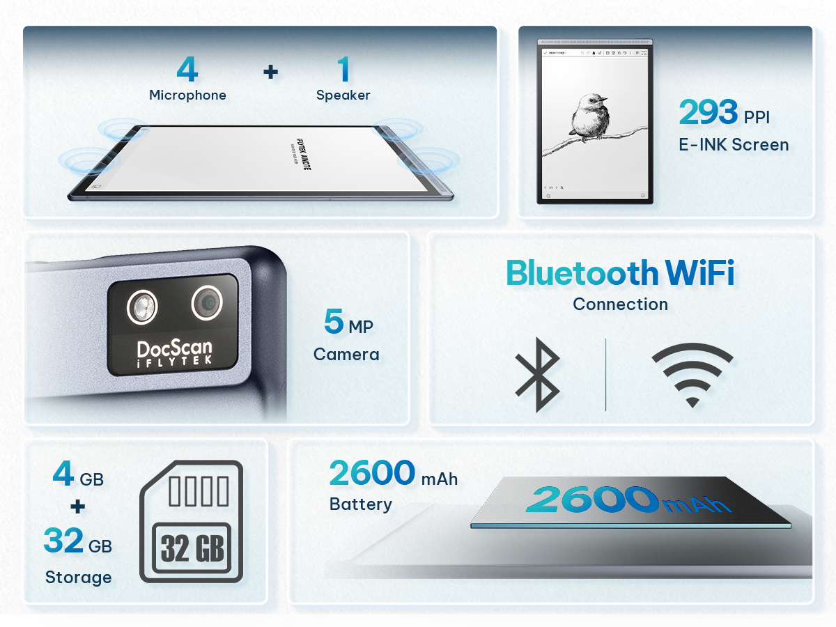 Verbaut ist ein 8,2 Zoll großes Display mit einer Auflösung von 1.440 x 1.920 Pixeln. Es kommt ein SoC mit vier Rechenkernen zum Einsatz, der Arbeitsspeicher ist 4 Gigabyte groß, der interne Speicher besitzt eine Kapazität von 32 Gigabyte. WiFi 6 und Bluetooth 5.0 werden vom 230 Gramm schweren und maximal 6,5 Millimeter dickem E-Reader unterstützt. Es ist ein Eingabestift nutzbar. Mit diesem kann zwischen 4.096 Druckstufen differenziert werden, eine Radierer-Funktion ist integriert. Der Stift benötigt keine Aufladung und kann magnetisch am AiNote Air 2 befestigt werden. Verbaut ist eine mit 5 Megapixeln auflösende Kamera. Alternativen gibt es auch etwa bei Amazon zu kaufen.