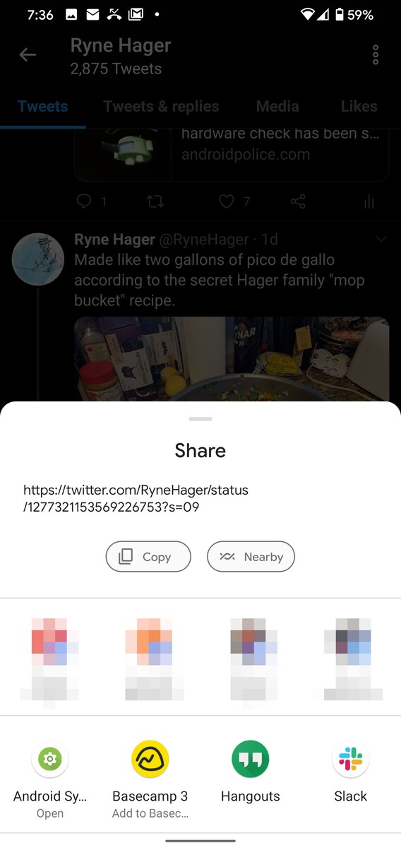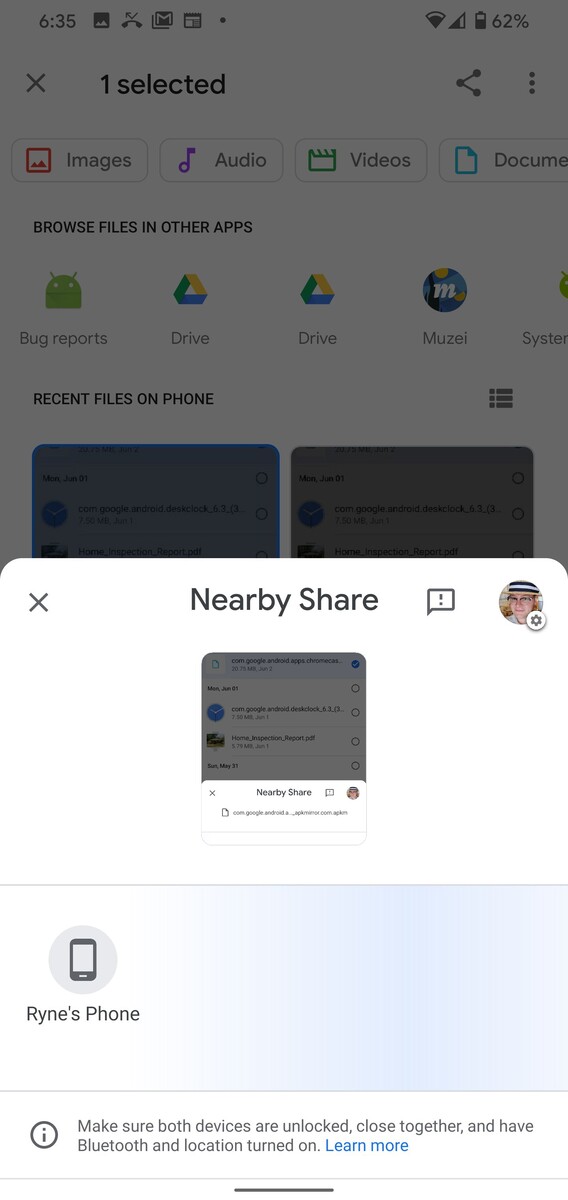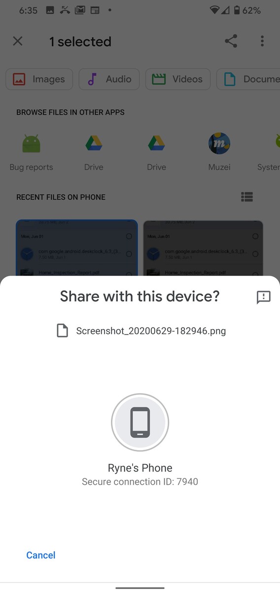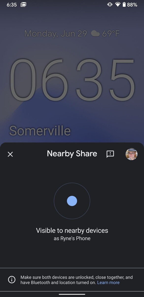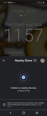 Sobald die neueste Betaversion der Play Services installiert ist, taucht das Icon für Nearby Share nicht nur in den Quick Settings von Android auf, sondern etwa auch im Teilen-Dialog der Anwendungen. Getestet wurde hier auf Pixel 4XL und Pixel 3a mit Android 10, das Aussehen scheint sich aber je nach zu teilendem Objekt und möglicherweise auch Android-Version zu ändern.