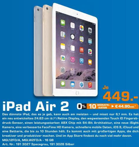 ![]() | Modell: Apple iPad Air 2 Preisvergleich: | Mit einer "Dicke" von nur 6,1 Millimeter und einem Gewicht von 444 Gramm zählt das Air 2 zu den dünnsten und leichtesten Vertretern in der 10-Zoll Tablet-Klasse. Auch die Akkulaufzeiten von 10 bis rund 20 Stunden, je nach Verwendung, zählen nach wie vor zu den Bestwerten unter vergleichbaren Geräten. Das Angebot listet die Einstiegsvariante mit 16GB Speicher und WiFi Funktion (kein 3G) für 449 Euro. Insbesondere Speicher sollte man hier gut überlegen, nicht etwa doch zur größeren 64GB-Variante zu greifen (rund 100 Euro Aufpreis, da ansonsten der Platz für Apps und Musik/Video-Dateien schnell knapp werden wird. Gesamtwertung im Test bei Notebookcheck: 87% "Gut" | 0,44 kg | 9,7 Zoll | |