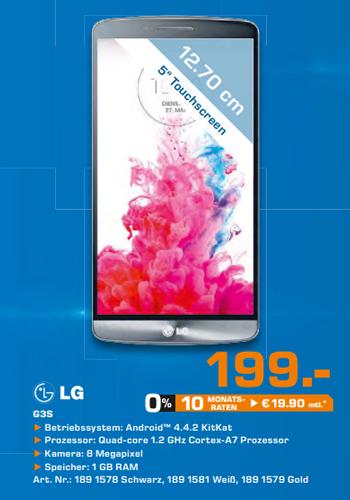 ![]() | Modell: LG G3 S Preisvergleich: | Das LG G3 S ist sozusagen die Sparvariante des Flaggschiffs G3 von LG. Abstriche müssen sowohl bei der Leistung als auch bei Display, Akku und Kamera gemacht werden, allerdings kostet das G3 auch rund doppelt so viel wie das 3G S. In einzelnen Tests des Gerätes ist von einer nicht immer flüssigen Bedienung des Gerätes zufolge der eingesetzten CPU zu lesen. » kein Test bei Notebookcheck verfügbar | 0,13 kg | 5,0 Zoll | |