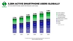 Die Marktforscher von Newzoo rechnen damit, dass im Jahr 2019 die Gesamtzahl der Smartphone-Nutzer weltweit auf 3,2 Milliarden Menschen steigen wird. Das entspricht einem Wachstum von +8,3 Prozent gegenüber dem Vorjahr. Die Zahl der rund um den Globus aktiven Smartphones wird in diesem Jahr auf gewaltige 3,8 Milliarden steigen.