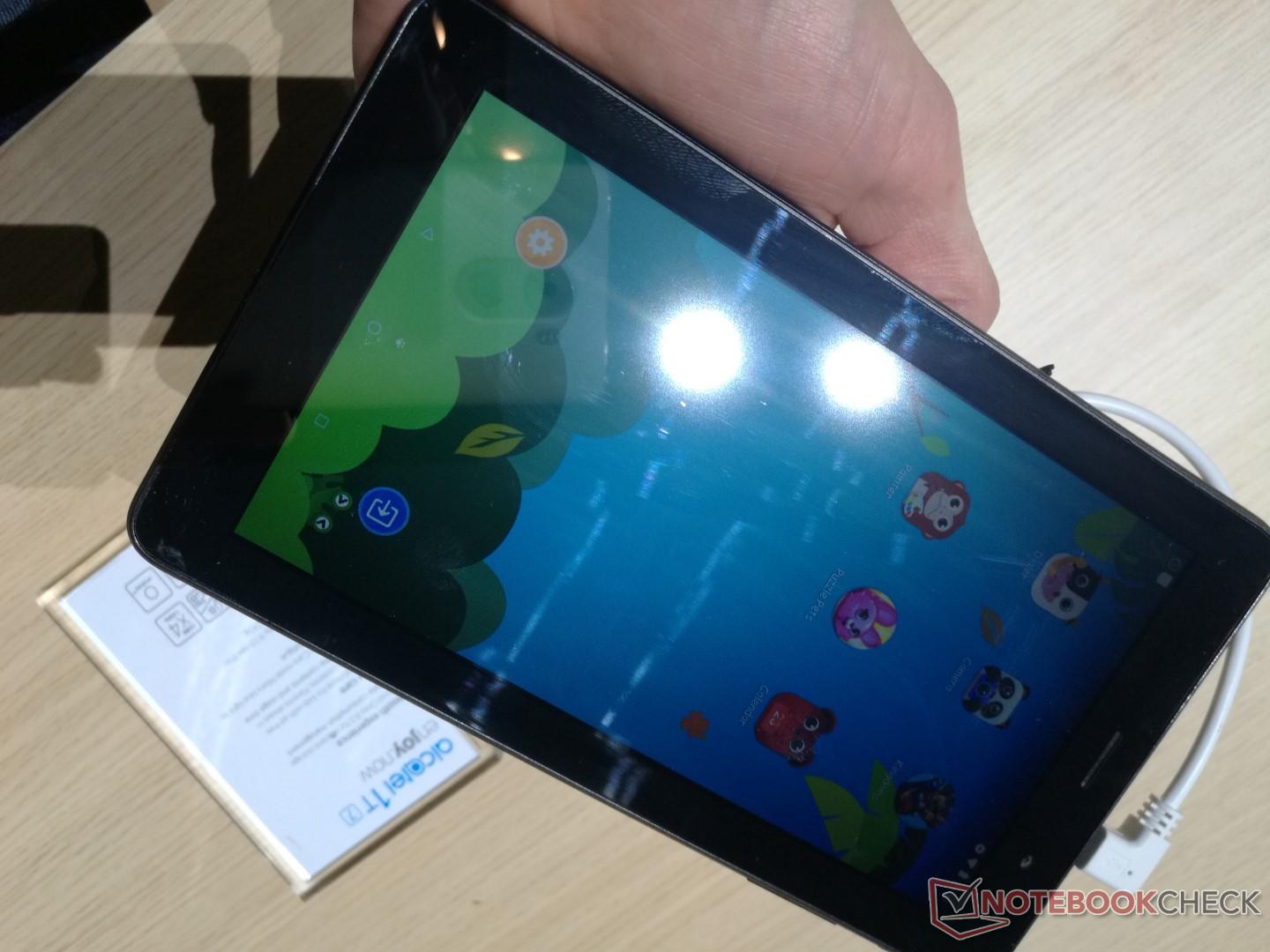 Auch zwei neue Tablets hat Alcatel am Mobile World Congress ausgestellt, beide werden der 1T-Serie zugerechnet. Eines ist 7 Zoll groß und kostet 70 Euro, das andere bietet 10 Zoll Displayfläche und kommt auf 100 Euro. Der Kids-Modus deutet schon an, an wen sich Alcatel mit diesen günstigen Tablets primär wenden will. Der 7 Zöller bietet 1.024 x 600 Pixel Auflösung sowie einen 2.580 mAh Akku, der 10 Zöller kommt auf 1.280 x 800 Pixel und fasst einen 4.000 mAh Energiespeicher. Als Prozessor dient ein MediaTek MT8321 Quad-Core-SoC mit 1 GB RAM sowie 8 oder 16 GB Speicher, in beiden Modellen jeweils durch Micro-SD-Slot erweiterbar.