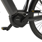 Für elektrische Tretunterstützung bis 25 km/h sorgt ein bürstenloser Mittelmotor von enovation. Dieser holt aus 250 W Leistung ein maximales Drehmoment von 70 Nm heraus. Dazu wartet der Antrieb mit einem Drehmomentsensor und einem integrierten Freilauf auf. Der vollständig im Rahmen integrierte Akku misst 360 Wh und soll laut Herstellerangaben für eine Reichweite von bis zu 110 km langen. In der Praxis liegt dieser Wert in der Regel niedriger. Einen Überblick über wichtige Daten wie den Akkustand liefert das enovation LC-Display am Lenker.