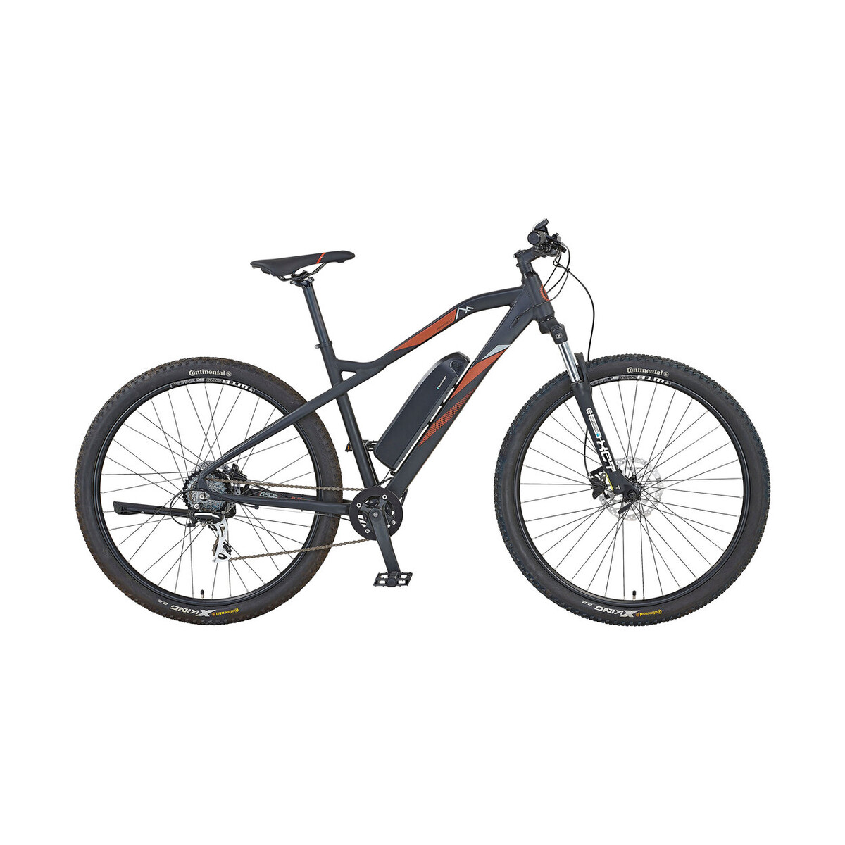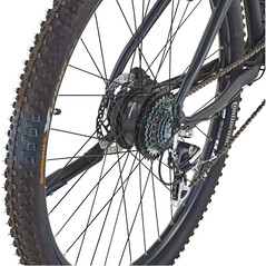 Auch hier ist ein 250 Watt starker Motor in der Hinterradnabe verbaut, der von Xiongda kommt. Gespeist wird er aus einem 374,4 Wh großen, in den Rahmen integrierten und entnehmbaren Akku, der laut Herstellerangaben für eine Reichweite von bis zu 60 km langt. Neben einer 7-Gang-Kettenschaltung von Shimano gibt es unter anderem Scheibenbremsen, eine Federgabel sowie ein Display mit Geschwindigkeitsanzeige, Gesamtstrecke, Tageskilometer und Akkuladung. Geeignet ist das rund 28 kg wiegende E-MTB für Personen von ca. 160 bis 195 cm Körpergröße und einem Gesamtgewicht von bis zu 130 kg.