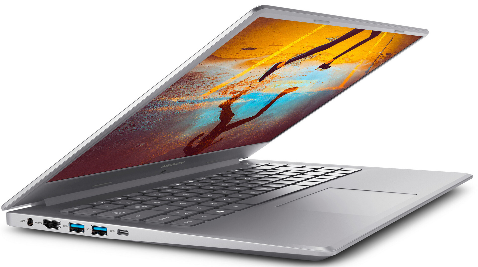 Für zügige Kommunikation integriert das Medion S6446 Laptop eine Intel Wireless-AC 9462 Karte mit integrierter Bluetooth 5.0-Funktion und Unterstützung von Dual-Band 802.11ac. Für Chats und Videokonferenzen ist im oberen Displayrahmen eine HD-Frontkamera inklusive Mikrofon eingebaut. Die integrierten Lautsprecher haben eine Dolby Audio-Zertifizierung. Das schlanke Medion S6446 bringt bei einer flachen Bauhöhe von 17,5 mm rund 1,78 Kilogramm auf die Waage.