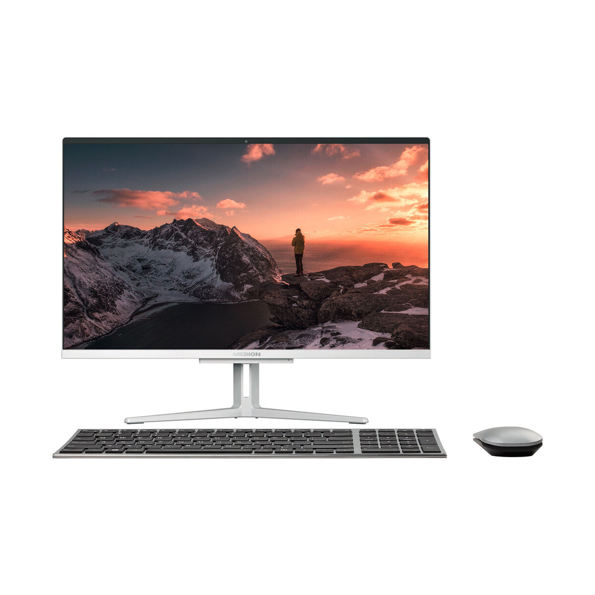 Der All-In-One-PC Medion Akoya E23403 kommt mit einem 23,8 Zoll großen Full-HD-Bildschirm, in dem der PC mit IntelIntel Core i3-1005G1 Laptop-Prozessor (Ice-Lake U) Core i3-1005G1 Prozessor und Intel UHD-Graphics, 8 GB DDR4 RAM und 256 GB SSD integriert ist. Zum Lieferumfang des 549 Euro teuren Gerätes zählen auch eine kabellose Maus und Tastatur.