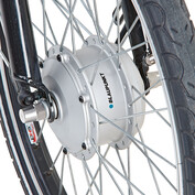 Das Prophete E-Faltrad ist mit einem 250 Watt starken Motor von Blaupunkt, der bis zu 30 Nm Drehmoment entwickelt, ausgestattet. Dieser wird aus einem 252 Wh großen Akku, der in den Aluminium-Faltrahmen integriert ist, gespeist. Der Hersteller gibt die Reichweite mit einer Akkuladung mit bis zu 70 km an, wobei dies natürlich von der Belastung - maximal zulässig ist ein Gesamtgewicht von 120 kg - der Fahrweise, dem Gelände und mehr abhängig ist. Das E-Bike selbst bringt mit Akku rund 22 kg auf die Waage.