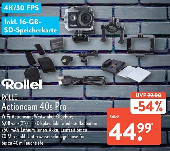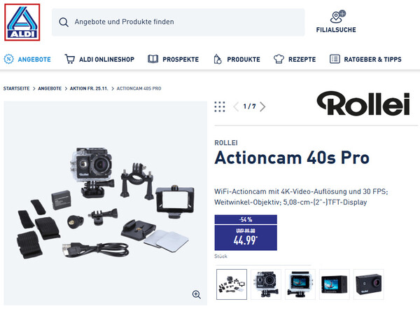 Die Rollei 40s Pro Actioncam ist auch online bei Aldi Nord ab dem 25.11. erhältlich.