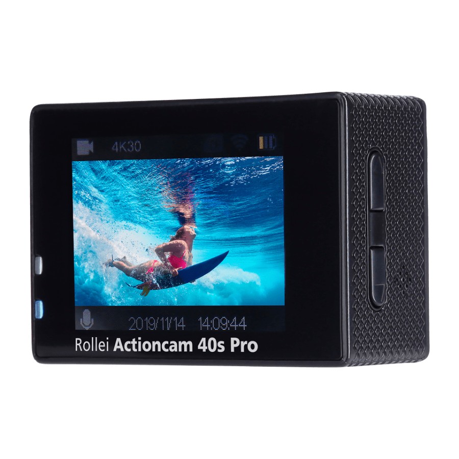 Zur Bild- und Motivkontrolle ist an der Rückseite der Rollei 40s Pro ein 2-Zoll-TFT-Display vorhanden, der Kamaersteckplatz für microSD-Karten nimmt SDXC-Karten mit einer Kapazität von bis zu 64 GB auf. Die Rollei 40s Pro nimmt Fotos im Datenformat JPG, Videos als mp4 (H.264) auf. Zur Kommunikation steht WiFi und micro-USB 2.0 zur Verfügung.