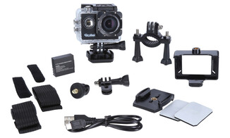 Aldi verkauft die günstige Actioncam Rollei 40s Pro mit Unterwasser-Schutzgehäuse für Tauchtiefen bis 40 Meter, wechselbarem Akku, Fahrradhalterung, Klipphalter, 4 weiteren Halterungen, Klettverschlussriemen, Klebesticker, USB-Kabel und packt sogar eine microSD-Speicherkarte mit 16 GByte dazu.