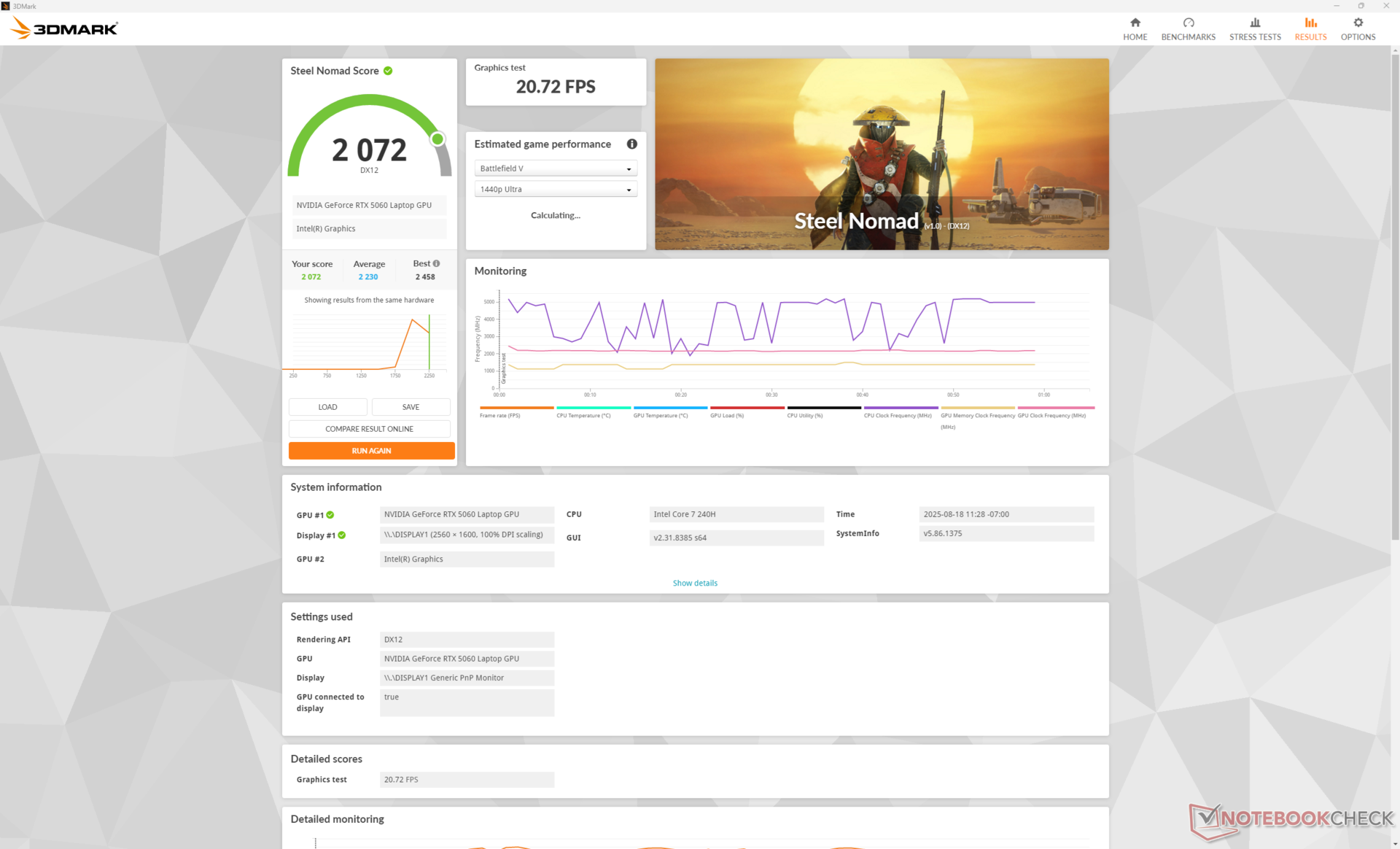 Was die Gaming-Fähigkeiten betrifft, so kann das 16 Aurora bei anspruchsvollen Titeln mit der nativen 2K-Auflösung Probleme haben, da die mobile RTX-5060-GPU eher auf 1.080p ausgerichtet ist. Die Aktivierung von DLSS und Frame-Generierung bei niedrigeren Einstellungen ist der Schlüssel zur Maximierung des Potenzials der RTX-5060-GPU. Ansonsten ist Gaming Performance nur eine marginale Verbesserung gegenüber älteren RTX-4060-Optionen.