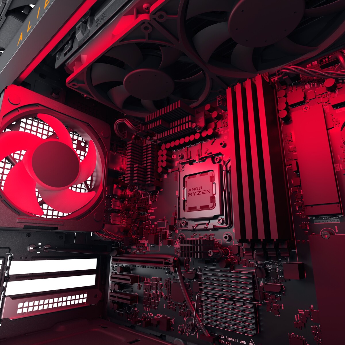 Das neueste Modell des Aurora R15 kann mit einer maximal 4 TB fassenden M.2-SSD sowie mit einer 2 TB Festplatte ausgestattet werden. Alienware verbaut 8 GB bis 128 GB DDR5-4.800-Arbeitsspeicher, allerdings werden Modelle bis 16 GB mit Single-Channel-RAM angeboten, was sich negativ auf die Performance auswirkt. Das Mainboard wird durch Alienware angepasst, wodurch die Kompatibilität mit einigen Komponenten eingeschränkt werden dürfte, Dell setzt in jedem Fall auf den günstigen B650-Chipsatz.