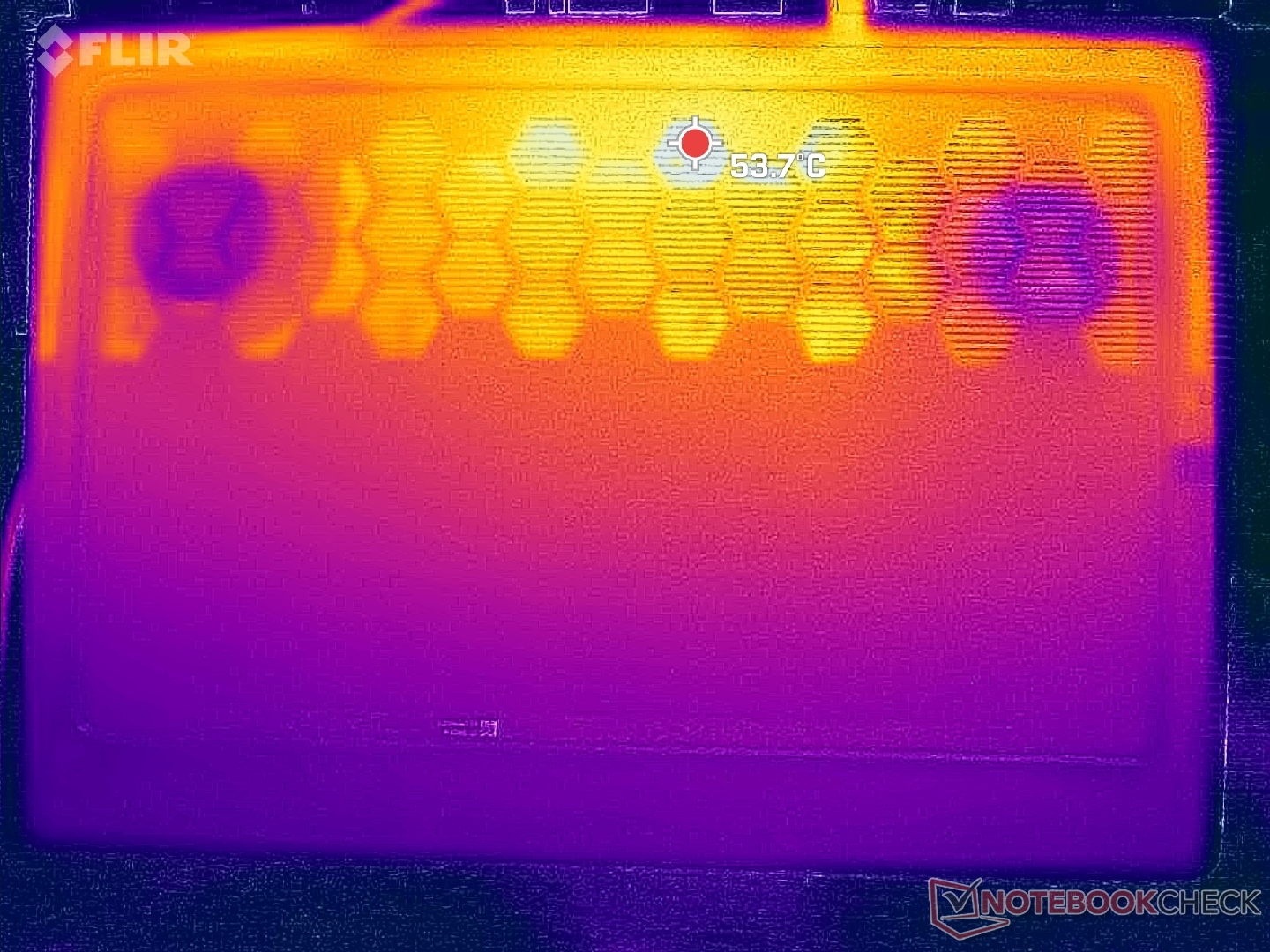 (-) Auf der Unterseite messen wir eine maximalen Wert von 48 °C (im Vergleich zum Durchschnitt von 43.3 °C).