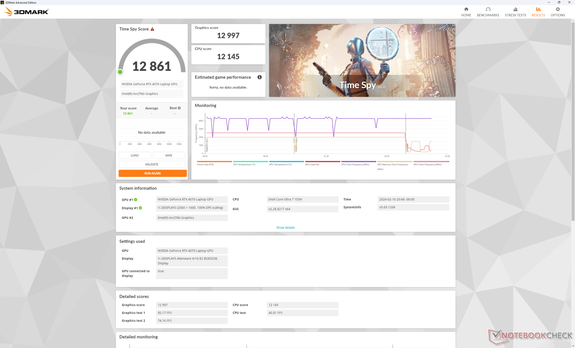 | 88.4 % v7 (old) | 06 / 2023 | Alienware x16 R1 i9-13900HK, GeForce RTX 4080 Laptop GPU | 2.6 kg | 18.57 mm | 16.00" | 2560x1600 | |