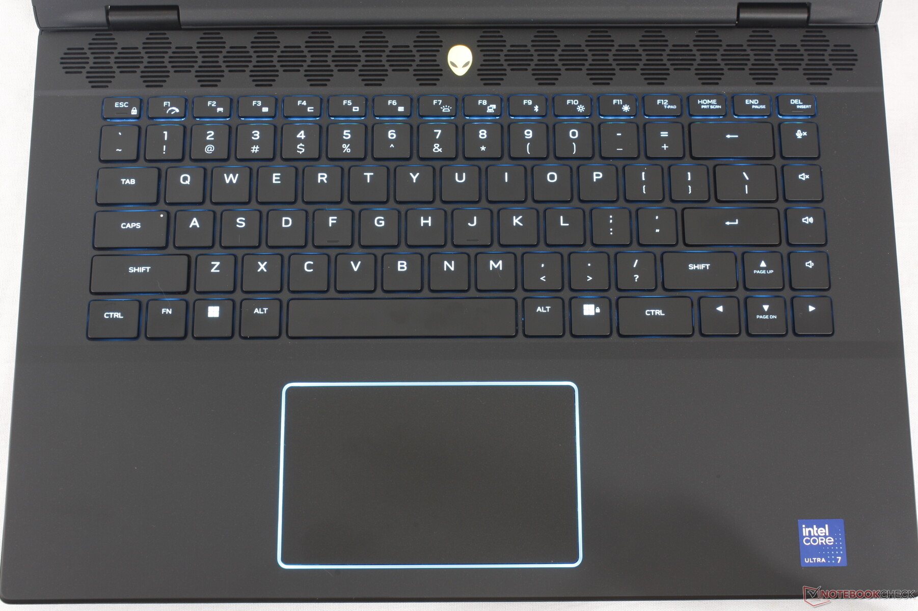 Neu an der Tastatur ist in diesem Jahr eine praktische "Stealth Mode"-Funktion, die mit der F2-Taste verbunden ist und das System in den Ruhemodus versetzt, ohne dass das Alienware Command Center gestartet werden muss. Ansonsten bleibt das Tastaturlayout das gleiche wie beim ursprünglichen m16 R1.