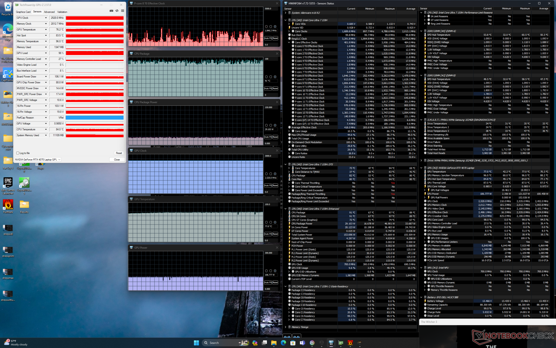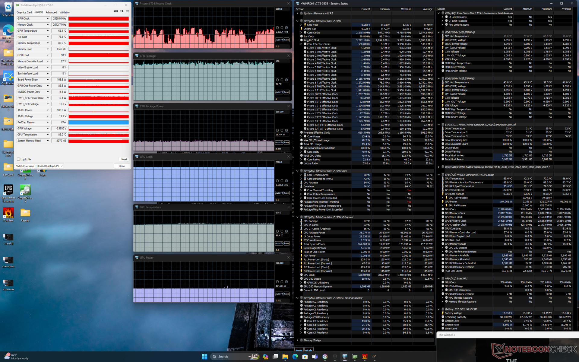 Beim Spielen oder bei CPU-lastigen Aufgaben entspricht der Gesamtverbrauch in etwa dem, was wir beim RTX 4060-betriebenen m16 R1 aufgezeichnet haben, bei etwas höherer Leistung pro Watt.
