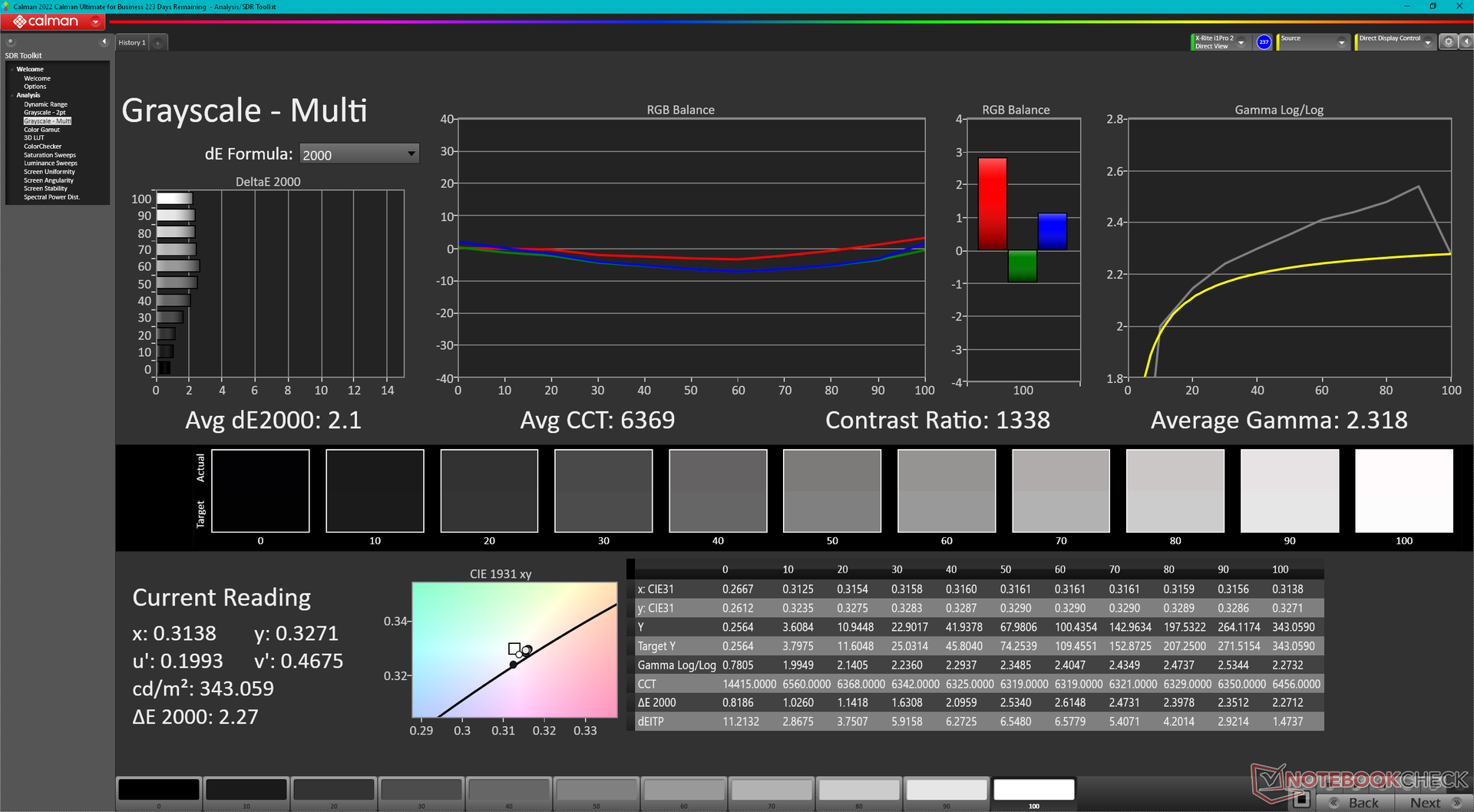 ΔE Greyscale Calman: 2.1 | ∀{0.09-98 Ø5}