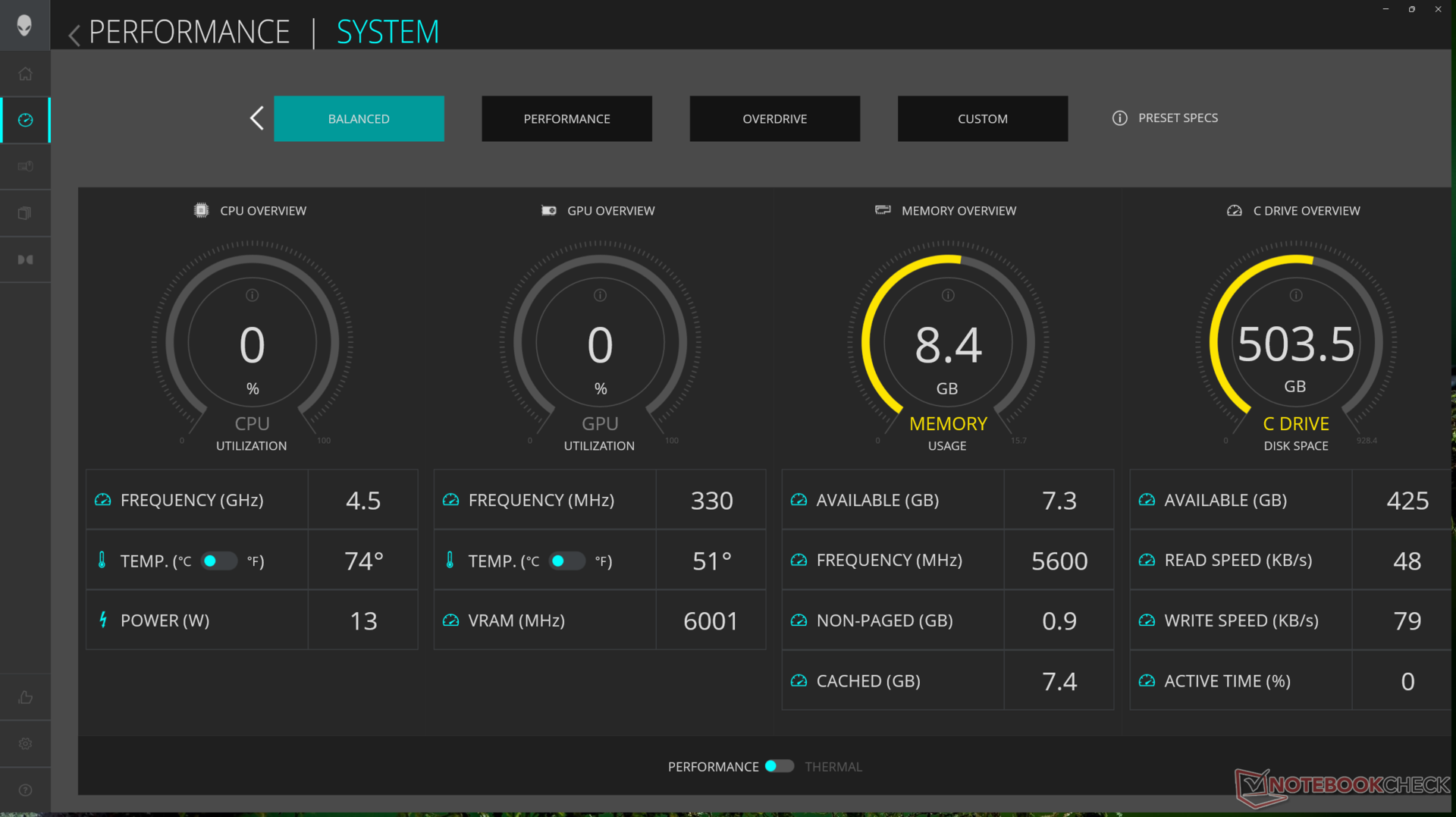 Der Leerlauf auf dem Desktop kann bis zu 8 W betragen, wenn der Quiet-Modus und der iGPU-Modus auf minimale Helligkeit eingestellt sind, oder bis zu 40 W, wenn der Overdrive-Modus und der dGPU-Modus auf maximale Helligkeit eingestellt sind. Wenn Sie die zusätzliche Leistung nicht benötigen, um die Akkulaufzeit zu verlängern, sollten Sie den Balanced-Modus und den iGPU-Modus wählen, wie im nächsten Abschnitt beschrieben.